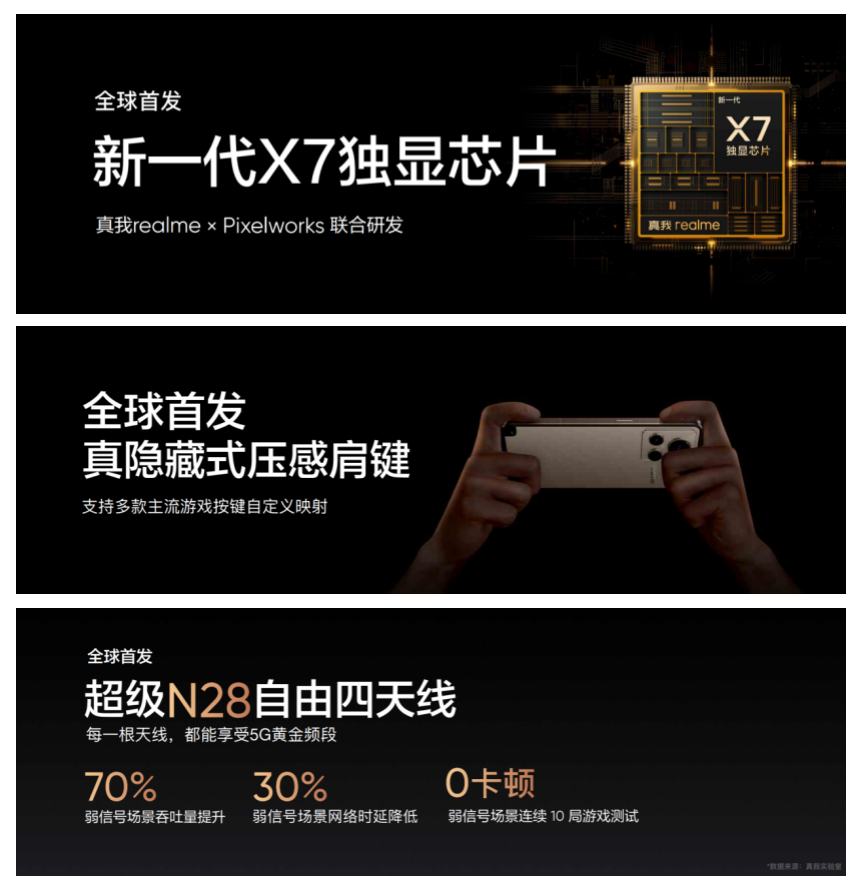 7月12日,真我realme举行新品发布会,正式推出了真我GT2大师探索版,集设计、性能、游戏、体验等全方位的升级,堪称“年度质感旗舰”。真我GT2大师探索版定价3499元起。发布会上,真我Buds Air3 Neo、真我笔记本Air也同步亮相。 探索颜值巅峰 硬箱传奇设计 真我致力于把潮流元素融入到产品设计当中,打造符合年轻人审美趋势的潮流设计。真我GT2大师探索版,由国际著名潮流设计师Jae Jung主理设计,首次将当代户外美学概念融入产品设计。灵感源自旅行中最常用的硬箱,精选荔枝纹牛皮纹理的大面积环保再生皮革和标志性的金属铆钉元素复刻手机背部,搭配以46度微弧C角打造的航空级金属直边中框设计,高度还原硬箱造型,打造高级质感与潮流设计并存的全新硬箱传奇设计“硬箱·旷野”。硬箱传奇设计是户外美学与工业秩序的新潮探索,兼具美学与功能性的平衡,更符合都市户外的潮流生活方式。 真我GT2大师探索版还推出了采用玻璃背板的“冰岛”和“苍岩”两种配色,引用全新微星冰感AG工艺和多面棱锥型微纹理工艺,通过调整蚀刻工艺,将每一颗细致的磨砂颗粒做成了立体的微型四面体,在整个背板上,打磨出了成千上万个晶莹剔透的小冰锥,不仅大大提升了整面玻璃的亮度和立体感,让AG玻璃也能呈现出如雪地般细腻晶莹的质感,而且带来冰凉手感,同时具备非常良好的抗污和防指纹性能。 120Hz超窄天际屏 电竞级的游戏操控及显示体验 真我GT2大师探索版搭载6.7英寸120Hz超窄天际屏,采用直角金属中框设计,质感满满,先进的微缝连接工艺,去掉了屏幕和边框之间的塑料支架,质感更加通透。新一代COP封装工艺 ,将下边宽度进一步缩减至2.37mm,屏占比高达94.2%,搭配隐藏式听筒设计,带来极窄边框出色的全面屏观感。屏幕支持1000Hz电竞操控引擎,10.7亿色原彩显示,获得HDR10+认证,拥有全维护眼调光系统,支持1.6万级的无极调光功能,带来电竞级的游戏操控及显示体验。挑战最快的光学指纹解锁,解锁速度仅需0.2秒,比眨一次眼睛的时间还要快。 探索性能巅峰 首批骁龙8+旗舰? 真我GT2大师探索版首批搭载第一代骁龙8+旗舰芯片,采用台积电4nm制程工艺,CPU性能提升10%、GPU频率提升10%、功耗降低30%。真我首发LPDDR5X闪存芯片,对比上一代功耗直降20%,能效比大幅提升。真我GT2大师探索版首个搭载双VC冰芯散热Max系统,相比前代产品,VC液冷散热面积提升154%,达到了4811mm?,堪比专业游戏手机,散热总面积高达37904mm?,对比上一代提升206%,堪称真我有史以来最大散热面积。真我GT2大师探索版实现性能与功耗的双重突破,带来旗舰级的性能体验。 打造电竞级游戏体验 首发新一代X7独显芯片? 真我GT2大师探索版是一款拥有电竞级游戏体验的主力手机,在顶级性能之上,全球首发新一代X7独显芯片,支持独显级游戏超分功能、最高120帧的多倍插帧技术,时延降低至最低10ms,带来高帧率、高画质、低时延、低功耗的超流畅游戏体验。行业首个采用真隐藏式肩键,兼顾功能性和美观,提升游戏“操控感”。支持全速天线矩阵系统2.0,全球首发超级N28自由四天线技术,AOL智能天线技术,显著改善弱信号场景下的游戏网络问题,保障游戏体验时刻在线。支持GT模式3.0,保证游戏帧率时刻稳定。内置杜比全景声双扬声器以及X轴线性马达,为游戏带来极佳的音效和4D游戏震感体验。 首个全链路GaN百瓦秒充 轻薄百瓦大电池方案 真我GT2大师探索版是行业首个轻薄的百瓦大电池手机,在8.17mm极致轻薄的机身下配置100W光速秒充和5000毫安大电池,使得快充、轻薄和长续航三者兼备,25分钟时间即可充电至100%,彻底缓解续航焦虑。真我GT2大师探索版引入首个全链路GaN百瓦秒充,创新地在手机端引入新型氮化镓材料,对比传统电荷泵方案,发热可降低 85%,配合氮化镓充电器,大幅提升充电效率。 5000万旗舰双主摄 专业有趣的拍照体验 真我GT2大师探索版采用了5000万的旗舰双主摄。内置全新优化调校的IMX766旗舰主摄,带来更加全能的拍照体验。全球首发的HyperShot影像架构,加速引擎升级,夜拍速度提升118%;全新的画质引擎,大幅提升成像细节和画面质感;采用自研磐石超级防抖算法的防抖引擎,支持OIS+EIS双防抖;超夜引擎,全新升级的ProLight 2.0夜景算法,有效提升夜景成片率。真我GT2大师探索版还支持街拍模式2.0,升级长曝光模式,新潮复古滤镜等新玩法;升级显微镜2.0,支持肤质检测功能。 真我GT2大师探索版拥有硬箱·旷野、冰岛、苍岩三种配色。售价方面,8+128GB,售价为3499元;8+256GB版本,售价为3799元;12+256GB的版本,售价为3999元。今天16点开启预售,7月19日0点,在线上线下各官方渠道正式开售,参与预售的用户,可享受赠送半年的碎屏保福利,至高享12期免息分期。 颜值与实力兼具 真我Buds Air3 Neo、真我笔记本Air同步发布 此次发布会上,真我同步发布了两款AIoT新品。其中真我Buds Air3 Neo集音乐太空舱设计、30小时超长续航、杜比全景声和AI通话降噪等优质体验于一身,将潮流与科技完美结合,开“舱”即享高品质音乐。真我Buds Air3 Neo售价为149元,首销限时价129元,真我老用户还可以领取30元优惠券,享受专属补贴价99元。 真我笔记本Air采用14.9mm超轻薄全金属机身设计,14英寸16:10黄金比例微边屏,4.9mm超窄边框;搭载第 11 代满血版酷睿处理器,配合冰封VC液冷散热技术,性能释放更加强劲,可以满足用户学习、办公和娱乐等多场景的使用需求。真我
