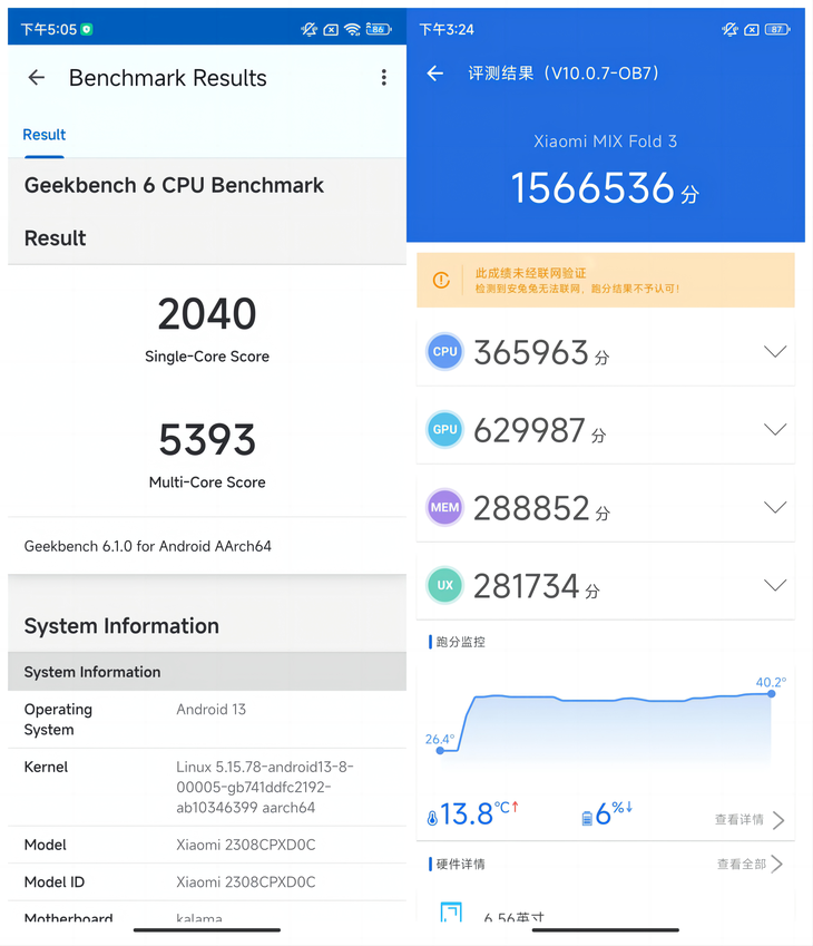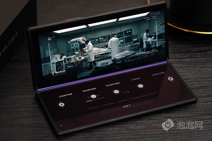 去年,小米带来了折叠屏旗舰小米MIX Fold 2,以创新的微水滴转轴和堆叠技术实现了11.2mm的轻薄设计,不仅成为当时折叠屏手机的标杆产品,更是引领了折叠屏手机轻薄化的发展。 现在,折叠屏手机也可以在手感上趋近于一部直板手机,那么在轻薄成为折叠屏手机的大趋势之后,折叠屏又该在哪些方面进行体验的升级呢?小米带来了全新的MIX Fold 3,一款轻薄折叠与真旗舰并存的产品。 依旧熟悉的大包装 此次小米MIX Fold 3测试机依旧是配备了专属的媒体礼盒,分为两层设计,手机在上层,底层则是赠品,包括水杯以及50W的无线充电器。 想必大家对于小米MIX Fold 3更为关心,那么下面我们就直接开始手机的评测内容。 轻薄机身呈现高端质感 作为小米高端旗舰的重要产品,小米MIX Fold 3有着十分优秀的设计,特别是对于细节的把控,比如在机身中框处采用了拉丝立边工艺,复杂的工艺能够让手机呈现出更高级的质感。 小米MIX Fold 3在设计上运用了曲面的设计,采用了微弧曲面玻璃,机身边缘更加圆润,也让手机的握感更为舒适。 手机镜头处也通过曲面的设计自然过渡到背部,有效的避免了镜头的突兀感。在手机镜头处还采用了一体化陶瓷面板作为装饰,展现出手机的出众品质。 此次小米MIX Fold 3共有三种配色,分别是月影黑、星耀金以及龙鳞纤维版,其中月影黑与星耀金均为玻璃材质,而龙鳞纤维版则是一种特殊的复合叠层材料。 龙鳞纤维是将芳纶纤维与陶瓷纤维进行高温高压的复合叠层,从而带来更高的强度支撑,它的强度是微晶玻璃的36倍,具备更强的耐冲击能力。从质感与手感上来看,小米MIX Fold 3 龙鳞纤维版非常不错,而且在轻薄方面,龙鳞纤维版也更有优势。 小米MIX Fold 3玻璃材质的版本折叠厚度为10.96mm,展开厚度为5.26mm,重量为259g。龙鳞纤维版的折叠厚度为10.86mm,重量轻至255g,在本就轻薄的机身设计上实现了新的突破。 小米MIX Fold 3拥有两种保护壳,标配版为支架保护壳,在保护壳上配备有一个支架,可以更好的观看视频内容。 同时也提供了一款皮质伸缩腕带素皮保护壳,带来不一样风格,但同样可以起到支架支撑的效果。 全新龙骨转轴,小体积更耐用 之所以小米MIX Fold 3能够实现更轻薄的设计,转轴的升级是非常重要的。此次小米MIX Fold 3搭载了全新的龙骨转轴,对转轴的设计全面压缩,从而释放17%的转轴空间,为轻薄机身提供了基础。 在转轴尺寸减小的同时,小米MIX Fold 3的龙骨转轴也升级为三连杆设计,要比目前主流的二连杆转轴拥有更为可靠的表现,特别是在手机意外跌落的时候,可以为手机内屏提供更安全的保护。 在耐用性方面,小米MIX Fold 3的龙骨转轴也十分的可靠,在支撑机构上运用了超级钢,更加坚固。而针对旋转机构上则是采用了更耐磨的碳陶钢,耐磨性提升了4倍。通过高强度+高耐磨的组合,小米MIX Fold 3的转轴通过了莱茵50万次折叠认证,确保在手机的寿命周期内持续具备稳定的开合手感。 小米MIX Fold 3还实现了悬停功能,可以在45°-135°之间无极自由悬停,在拍照时,可以利用悬停功能拍摄低角度的照片,也可以使用拍照倒计时的功能来完成大合影的拍摄,带来更便捷的拍照体验。 在观看视频时,悬停功能也可以提供便利,主屏可以显示视频画面,通过副屏可以实现音量调节、屏幕亮度调节、播放\暂停以及拖动进度条的设计,手机自带支架功能,看视频也很方便。 在使用WPS的时候,悬停功能也带来了新的体验,主屏显示PPT的内容,副屏可以显示备注以及其余PPT的页面,让你在介绍当前页面的同时,对于临近的PPT页面了如指掌。 此外,使用钉钉参加线上会议的时候,也可以利用悬停功能带来便捷的视频会议体验。 旗舰双屏 高效好用 小米MIX Fold 3在屏幕上也进行了升级,采用了旗舰级的双屏显示。其中外屏为6.56英寸,比例为21:9,采用三星E6材质,支持120Hz刷新率以及P3色域显示。这块外屏配备了康宁Victus2玻璃,抗摔耐刮效果更优秀。 内屏方面,尺寸达到了8.03英寸,也同样采用了三星E6材质屏幕,升级的Eco? OLED Plus屏幕不仅显示效果出色,而且功耗更低,配合LTPO 1-120Hz的自适应刷新率,从而具备更长的续航能力。此外,内屏与外屏一样,支持P3色域,具备内外一致的显示效果。 小米MIX Fold 3的内屏采用了UTG超薄玻璃,对于抑制折痕也有一定的帮助,确保长时间使用后,内屏依旧平整。 得益于大尺寸的屏幕,小米MIX Fold 3可以同时运行多个应用,可以选择两个应用并排显示,也可以将应用以浮窗的形式开启,多任务操作更加的快捷高效。 当用户频繁的在两个应用之间切换的时候,小米MIX Fold 3可以智能的弹出分屏的提示,点击就可以自动将两个应用进行分屏操作,在日常使用中带来更为便捷的操作。 有了分屏操作,你除了一边刷微博一边聊微信外,在购物的时候也可以同时开启两个购物软件来进行价格比较,小米MIX Fold 3的大尺寸屏幕带来更多的应用使用场景。 依靠小爱翻译的全新能力,小米MIX Fold 3可以实现实时翻译功能,通过AI大模型进行快速准确的翻译,左侧为原文,右侧就可以显示翻译后的内容,查看外文信息也不存在困难。 除了分屏,小米MIX Fold 3还支持智能小窗引导功能,比如在打车或者游戏更新时,手机会提示将这些应用以小窗的方式运行,从而既不影响该应用的运用,又可以让手机运行其他的软件,提升多任务并行的效率。 如果是使用小米MIX Fold 3进行导航,同时手机收到信息,那么点