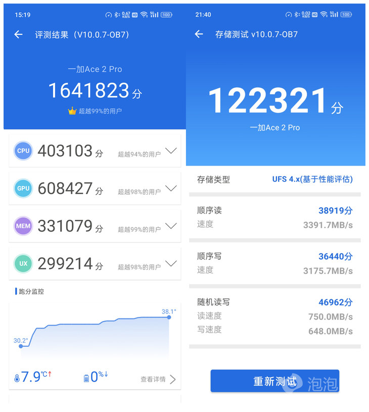 凭借着今年上半年推出的一加11、一加Ace 2以及一加Ace 2V,一加已经成为行业中性能手机的引领者,不仅在旗舰领域维持行业领先的优势,而且将性能下放,让更多用户能够体验到高性能手机带来了流畅体验。 日前一加Ace 2 Pro正式发布,这也是下半年一加带来的新答卷,不仅在性能上进行升级,更是从硬件、调校以及散热三方面入手,打造更为强大的性能释放能力,再一次打破手机性能的天花板,下面就来看一下这款手机在性能方面到底有着怎样的表现。 外观 在外观设计方面,一加 Ace 2 Pro延续了一加 11 和一加 Ace 2 的高辨识度设计语言,配色上带来了极光绿与钛空灰,呈现出更高端的质感。 手机的镜头设计极具辨识度,整个镜头模组就是一块真实的玻璃,通过玻璃冷雕工艺、立体蚀刻工艺两大全新工艺,在镜头模组做出与后盖相同的金属质感与颜色,并从背面反向蚀刻出镜头模组中间 CD纹及字符,让玻璃拥有了与金属相似的反射美感,与光滑的背部玻璃相得益彰,更显精致。 在机身上,通过特殊材料工艺,不仅提升玻璃的光泽度,而且不易沾染指纹,配合曲面机身,带来优秀的握持体验。 屏幕 屏幕方面,一 Ace 2 Pro搭载了与京东方合作打造的Q9+材质6.74英寸 1.5K AMOLED柔性曲面屏,具备2.17mm的极窄边框。Q9+材质发光效率更高,并且功耗降低,屏幕手动至高亮度达 550nit,全局至高亮度 1200nit,局部峰值亮度可达 1600nit,在户外场景下依然能带来出色的显示效果。 在显示效果上,一加 Ace 2 Pro的屏幕支持支持 10bit 色深,可展现 10.7 亿色,100% DCI-P3 色域,显示效果出众。 一 Ace 2 Pro支持120Hz刷新率,并且可以根据屏幕显示内容在 45Hz/60Hz/90Hz/120Hz 等多档刷新率间进行顺滑切换,实现极速变频的效果,达成屏幕流畅度与功耗之间的良好平衡。结合游戏触控黑科技「灵犀触控」,带来优秀的屏幕触控体验。 一加 Ace 2 Pro 还支持 2160Hz 高频 PWM 调光,结合屏幕自身的 OLED 低蓝光技术,从屏幕显示质量、环境光管理、护眼技术等维度呵护用户双眼。凭借出色的护眼性能,一加 Ace 2 Pro 通过了莱茵 T?V 全局护眼认证。 性能 一款手机的性能如何,平台、内存以及存储是十分重要的性能铁三角,一加 Ace 2 Pro采用的是第二代骁龙8移动平台+UFS 4.0内存+LPDDR5闪存的黄金组合,并且带来了24GB内存以及1TB存储的超旗舰组合,具备旗舰的硬件实力。 一加 Ace 2 Pro的综合性能测试成绩达到了1641823分,存储得分为122321分,从性能层面来看,一加 Ace 2 Pro的表现十分出色,可以说已经是一款非常旗舰的手机。 作为行业首款24GB内存的手机,一加 Ace 2 Pro带来的不仅是性能的提升,对于体验的升级也起到了至关重要的作用。针对24GB大内存的版本,一加 Ace 2 Pro也带来了升级版的内存基因重组技术,实现全局内存架构,当用户打开应用时,一加 Ace 2 Pro 便能跳过手机在闪存中读取、挑选、组合应用的繁琐步骤,直接从内存中打开应用,大幅提升应用开启速度。 目前全局内存架构技术已经支持高德地图、微博、小红书、飞书、支付宝、抖音等应用程序,经过测试,在开启应用的速度方面,要比传统的旗舰手机更快。 此外,依靠24GB的内存,一加 Ace 2 Pro也支持永生后台技术,可以支持常用的41款应用72小时保活,常用应用可以直接点击启动。而16GB版本一加 Ace 2 Pro也可以支持至多31个应用程序,也具备了优秀的使用体验。 强劲的性能也为手机提供了良好的游戏基础,同时,一加 Ace 2 Pro也在软件层面带来了来HyperBoost 2.0 游戏稳帧引擎、超帧超画引擎、灵犀触控三大游戏黑科技,对手机游戏三大核心体验——帧率、画质、触控进一步升级,带来兼具精准的触控、高帧稳帧以及超清画质的游戏新体验。 下方为开启超级HDR画质界面 在游戏时,我们还可以开启一加 Ace 2 Pro的超级HDR画质,开启后画面亮度以及光影效果都有更好的表现,为用户带来更优质的游戏画面。 而且一加 Ace 2 Pro也针对《原神》进行的专门的优化,包括启动游戏加载速度、流畅度等方面进行了优化。经过Perfdog实测,在极高画质+60帧的设定下,须弥城跑图30分钟,最终的平均帧率位53.6FPS,在高负载的情况下也具备一定的流畅体验。在日常游戏时,我们可以开启游戏超帧功能,从而获得更稳定流畅的游戏表现。 《王者荣耀》在极高帧率、超高分辨率的设定下,可以非常流畅的运行,经过Perfdog实测,平均帧率达到了119.6FPS,实现全程的满帧运行。即使是激烈的团战也能够维持稳定流畅的运行。后续一加 Ace 2 Pro还将支持《王者荣耀》的ADP自适应画质功能,从而进一步提升游戏稳定性。 《和平精英》可以在一加 Ace 2 Pro上实现90帧的模式,经过Perfdog测试,最终平均帧率达到了89.8FPS,出色的帧率表现也让一加 Ace 2 Pro也成为 2023 年和平精英职业联赛(PEL)指定用机。 持续的性能输出离不开高效散热的支持,一加 Ace 2 Pro首发了航天级的天工散热系统,并且全球首获莱茵散热认证,在散热方面达到了行业领先的水平。 天工散热系统拥有9140mm的超大散热VC,对于散热能力的提升起到明显的帮助。此外,还加入了航天级金刚石导热凝胶,并搭载航天级超导热石墨,进一步加快了散热的效率。 除了更大的散热面积与更先进的散热材料外,一加 Ace 2 Pro 拥有行业先进的散热空间结构,借助全球首创的「一体式双循环散热系统」与全球首创的空间设计「拉瓦尔气道」,将行业常规的平面散热维度拉升至空间散热维度,将双循环散热