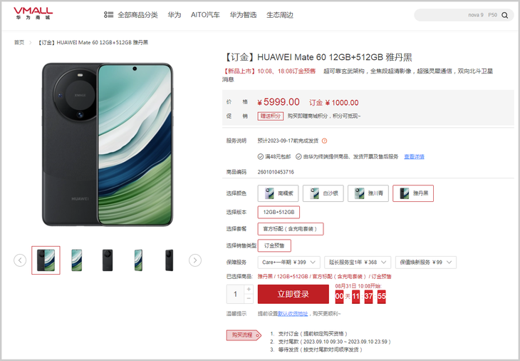 昨日华为Mate 60 Pro新机登场,掀起了一波华为热。今日,华为Mate 60继续登场,12GB+512GB存储版本预售价5999元。 华为Mate 60 Pro采用的是6.82英寸曲面屏,屏幕上侧采用3打孔设计。而华为Mate 60采用的是6.69英寸直屏,屏幕上侧采用单打孔设计。外观上两者还是很好辨认的。 影像方面,华为Mate 60前置为1300万像素超广角摄像头(F2.4光圈),后置为5000万像素超光变摄像头(F1.4~F4.0光圈,OIS光学防抖)+1200万像素超广角摄像头(F2.2光圈)+1200万像素潜望式长焦摄像头(F3.4光圈,OIS光学防抖),支持自动对焦。 超可靠玄武架构,全焦段超清影像,超强灵犀通信,双向北斗卫星消息,这些华为Mate 60同样具备。此外,华为Mate 60同样提供4种外观配色,包括雅川青、南糯紫、雅丹黑、白沙银。 关于华为Mate 60的处理器,华为官网暂时没有公布。外界普遍认为,应该也是麒麟9000S。 |