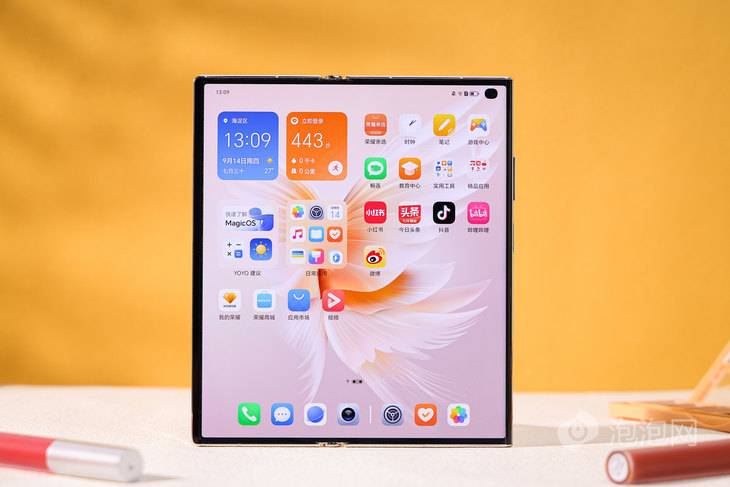 轻薄化成为折叠屏的新方向,越来越多的折叠屏在重量以及厚度上趋近于传统的直板手机,但是你是否有想过,现在已经有折叠屏可以在厚度和重量上更优于直板手机呢?看似不可能的事情,荣耀做到了。 在今年的IFA展上,荣耀推出全新概念手机——荣耀V Purse,214g的重量以及8.6mm的折叠机身不仅创造了折叠屏手机的记录,甚至要比传统直板手机更加轻薄,解锁了折叠屏手机新体验。 轻薄潮流设计 充满时尚的科技单品 荣耀V Purse不仅是一部手机,同时也是一款时尚单品,轻薄的外观看起来就像是一个钱包,而在设计上,荣耀V Purse也融合了钱包的元素,比如在卡扣部分采用了钱包拱形扣的设计。 此外,荣耀V Purse还支持个性化钱包壁纸,当手机折叠之后,背部的屏幕可以显示多款潮流壁纸,满足用户不同的穿搭要求。 全球之最的轻薄折叠屏手机是如何炼成的? 以往折叠屏给人一种厚重的印象,虽然今年折叠屏都朝着轻薄化发展,但依然无法达到直板手机的水平。而荣耀V Purse在折叠状态下的厚度只有8.6mm,展开状态下厚度更是仅4.3mm,以超越直板机的手感为用户带来了舒适的体验。 之所以能够做到更轻薄的机身,铰链是非常关键的,荣耀V Purse搭载了荣耀蝶翼铰链,铰链只有2.98mm,从而实现了更加纤薄的机身。与此同时,荣耀V Purse在铰链设计中引入高端腕表中所使用的柔顺工艺,使铰链轻薄的基础上实现了小型化设计,提升了铰链的可靠性。 荣耀V Purse还内置了荣耀微雕凹凸轮,将其运用在铰链当中,直径只有1.73mm,降低尺寸的同时依然具备优秀的折叠可靠性。 解决了铰链问题,电池也会影响到机身的厚度,因此荣耀V Purse也搭载了全新一代的青海湖双电池,电池厚度只有2.3mm,这也是专为轻薄折叠屏定制的电池,让机身可以更加轻薄。 电池虽然薄了,但是荣耀V Purse的电池容量依然达到了4500毫安时,配合低压电荷聚能技术,实现了长续航的使用表现。 要轻薄更要可靠耐用 荣耀V Purse在铰链设计中大量使用了钛合金与盾构钢,其中铰链的核心零部件中使用盾构钢的占比高达91%,盾构钢的材料强度可以达到1800MPa,因此实现了减重的同时提升铰链的强度。 在主板等关键部件区域,荣耀V Purse还采用了可再生尼龙材料。而在电池盖上则采用了高强立体超纤复合材料,结合玻璃微珠掺杂工艺,重量减轻1.7g。大量创新材料的应用,让机身轻量化的同时,强度显著提升。 荣耀V Purse的转轴开启时需要按下开关,转轴会弹出,从而方便用户展开手机。弹开的操作主要依靠机身内的游丝结构,为了提升耐用性,荣耀V Purse搭载了荣耀自研游丝结构,厚度只有1.2mm,在相同推力的情况下,体积比标准产品减少65%。耐用性方面,经过20万次耐久测试后,衰减小于5%,用户在使用荣耀V Purse可以放心的展开手机,不用担心耐久性问题。 屏幕可靠性解决方案确保外折屏幕安全 荣耀V Purse在折叠状态下,屏幕处于外侧,相较于传统的内折叠手机,屏幕的安全性更值得关注。为了确保外折屏幕的安全,荣耀V Purse带来了由保护层、缓冲层、支撑层和防护层共同构成的屏幕可靠性解决方案,有效解决了外折屏幕易磨损、易碎等问题。 其中,保护层外新一代超耐磨减反AR保护膜,耐磨提升100%,屏幕反射降低98%。缓冲层则是采用?多层复合超弹金属材料,配合整机缓冲设计,抗跌提升2.7倍,抗挤压提升1.5倍。防护层采用360°环绕隔层,隔绝水气、酸碱、油污等各类异物。 荣耀V Purse的屏幕通过了包括20万次折叠开合、20万次折叠按键、抗跌耐摔、抗冲击、屏幕耐磨在内的多项权威机构测试,通过瑞士SGS折叠屏双五星认证外折手机。 当屏幕展开后,尺寸达到了7.71英寸,分辨率为达到了2348×2016,屏幕的峰值亮度也达到了1600nit,在室外阳光下可以确保内容清晰可见。而当夜间使用手机时,屏幕亮度还可以抵制2nit,在夜间不会刺眼。 在护眼方面,荣耀V Purse还带来了2160Hz高频PWM调光,低亮度下显示色彩更为均匀,不偏色,并将频闪降低到人眼安全健康的范围内,有效呵护眼部健康。同时,配合类自然光护眼技术以及助眠显示技术,可以在夜间带来更为舒适的手机使用体验。 翻转拍照自拍更好看 荣耀V Purse配备了IMX800 5000万像素超感光主摄镜头,拥有f/1.9光圈,并且支持像素四合一,实现等效2.0μm超大感光单元,从而提升画面的清晰度,即使在暗光环境下依然有着出色的表现。 得益于荣耀V Purse折叠的设计,手机的后置镜头也可以用于自拍,用主摄来自拍,自然效果更加的出色。荣耀V Purse支持AI人像肤色算法,可智能提亮肤色,让人像肤色自然细腻透亮。 荣耀V Purse还配备了1200万像素的超广角微距镜头,带来更丰富的拍摄模式,不仅可以拍摄广阔的风景,也可以拍摄微小的细节。 荣耀V Purse具备了出色的拍照表现,强大的硬件基础配合AI算法,让照片在观感上更讨好眼球,能够满足用户的日常拍摄需求。 夜间拍摄时,荣耀V Purse能够呈现更为真实的光影效果,并且对于细节的展示也十分到位,地砖与墙面的纹饰十分的清晰,能够很好的还原夜间拍摄的场景。 折叠屏搭配MagicOS 7.2 尽享智慧生活体验 荣耀V Purse搭载了MagicOS 7.2系统,配合折叠的设计,带来了很多便捷的体验。例如现在我们日常生活中移动支付已经成为趋势,甚至大家都已经习惯了不带现金,使用手机支付的操作,每次支付时我们只需要打开支付二维码就可以了,非常的方便。 荣耀V Purse就带来了双击背屏快捷亮码的功能,在