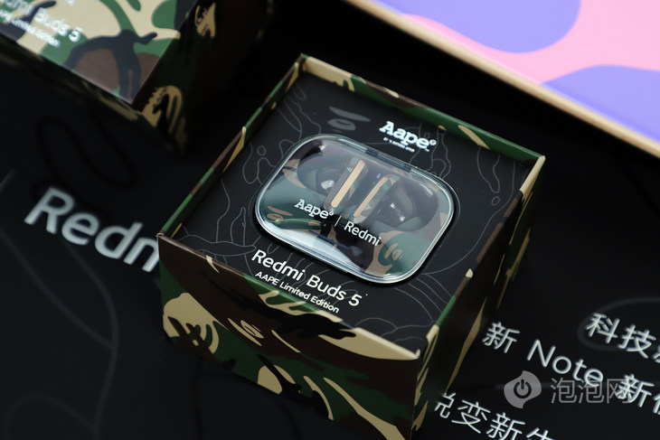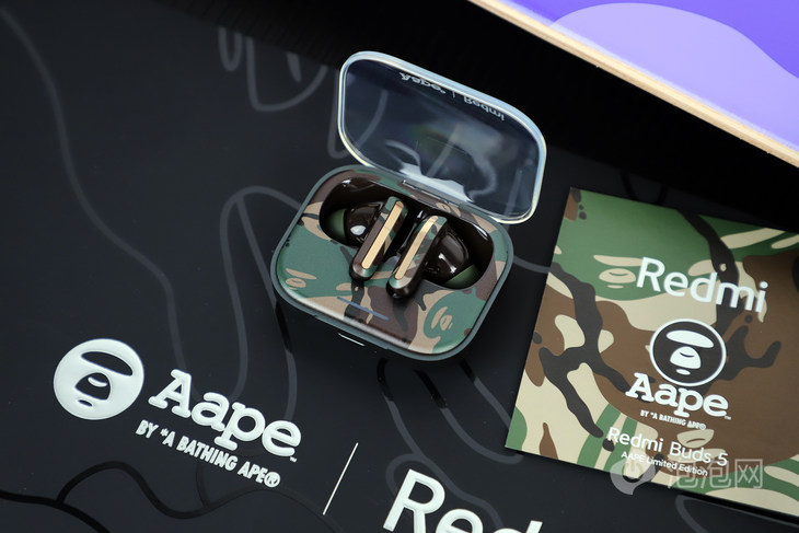 199元的Redmi Buds 5非常的超值,同时Redmi也带来了Redmi Buds 5 AAPE潮流限定版,为追求时尚潮流的用户带来了新的选择,潮流限定版售价299元,虽然价格贵了,但时尚精致的设计依然非常值得推荐。 Redmi Buds 5 AAPE潮流限定版采用了专属的迷彩包装,可以看到AAPE的MOON FACE图案以及Redmi等字样。 打开包装就可以看到耳机本体,Redmi Buds 5 AAPE潮流限定版的充电仓采用了透明的上盖,配合迷彩的机身,具有极高的辨识度。 Redmi Buds 5 AAPE潮流限定版的耳机统一为迷彩设计,并且配有金色的装饰条,看起来非常精致。 在耳机内侧则可以看到Redmi字样以及MOON FACE图案。 Redmi Buds 5 AAPE潮流限定版还专门设计了配对弹窗动画,进一步强化的品牌专属感。 Redmi Buds 5 AAPE潮流限定版不仅具备优秀的音质表现,而且也有着时尚个性的外观设计,即使科技产品,同样也是潮流配饰。 |
