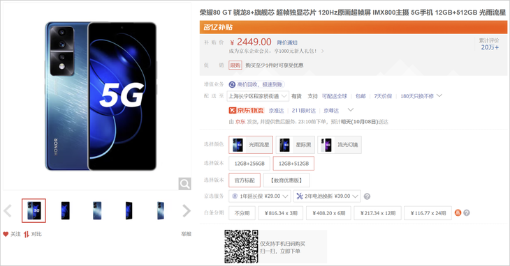 目前在京东自营上面,荣耀80 GT这款手机12+512GB版本已降至2449元,性价比非常高,笔者力推。 荣耀80 GT手机于2023年1月份上市,搭载骁龙8+移动平台,性能不俗。此外荣耀80 GT还搭载有一颗超帧独显芯片,支持帧率增强和实时HDR功能,既可以带来高帧画面,又能降低功耗,同时还能提升画面观感。 屏幕方面,荣耀80 GT搭配一块6.67英寸AMOLED柔性直屏,2400×1080分辨率,支持10.7亿色显示,100% DCI-P3广色域、5000000:1对比度、1400nit局部峰值亮度与1000nit全局峰值亮度,同时120Hz高刷和300Hz触控采样率可以有效提升游戏体验,且直屏也更适合用来玩游戏。 荣耀80 GT还拥有基于MagicOS平台级AI能力打造的游戏超帧引擎,现已支持众多主流游戏。再配上4800mAh大容量电池,可助力玩家玩个痛快。 |