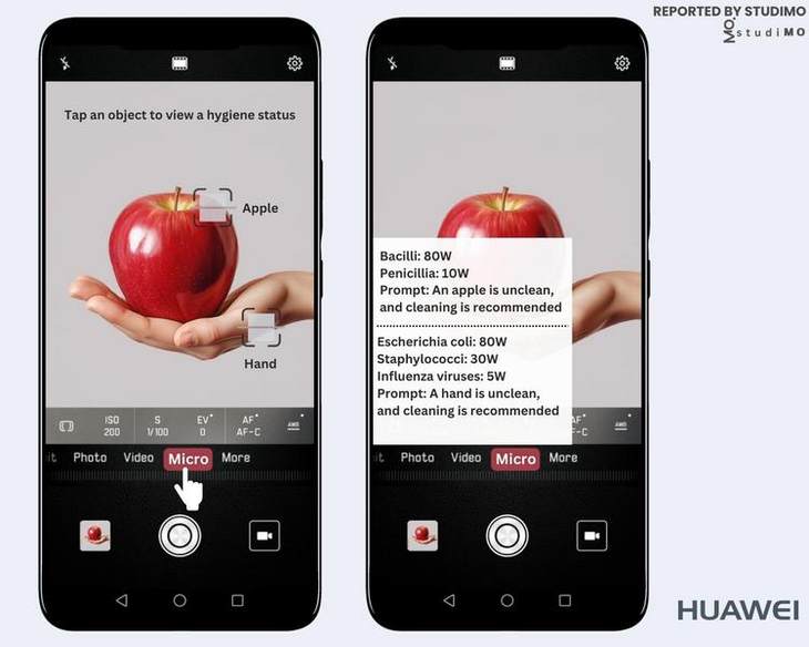 华为手机长期在DxOMark中获得最 佳拍摄手机的地位,比对手遥遥领先。最近华为在美国新公开一项新专利技术,这一全新拍摄功能,或会改变用家生活习惯。 华为在最近公开一份在手机使用的微距镜专利,镜头与主体距离保持5毫米左右,就可以放大20 - 400倍。微距拍摄功能不只用于摄影,而是颗通过相关的应用,在拍摄后分析物件上的细菌含量,更有清洗建议等进阶功能。 微距拍摄功能不只用于摄影 而是可通过相关的应用,在拍摄后分析物件上的细菌含量,更有清洗建议等进阶功能 由于华为递交专利文件时,还是在疫情全球爆发的时期,在当时来说这功能相当创新实用,不知道在未来真正推出的时间,会不会有所修改。 |