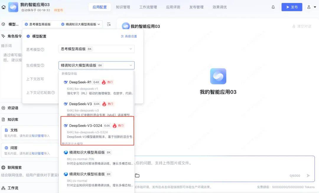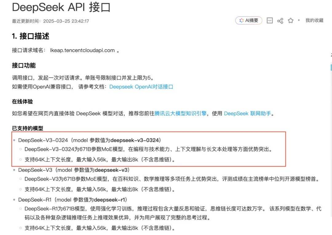 腾讯云AI应用工具箱再升级。3月25日晚,腾讯云率先上线DeepSeek-V3-0324版本,企业和开发者可以通过腾讯云直接调用新版模型的API接口,获得稳定优质的服务。同时,腾讯云旗下大模型知识引擎也接入了新版模型,通过平台内置的RAG和工作流能力,用户可以快速搭建专属AI应用。 用户可以在腾讯云官网调用API接口: 也可以基于大模型知识引擎内置的V3新模型快速搭建应用: https://cloud.tencent.com/product/lke 腾讯云DeepSeek-V3-0324 API接口的价格对标DeepSeek官方,输入为每百万tokens 2元,输出为每百万tokens 8元。 DeepSeek官方发布显示,新版V3模型借鉴 DeepSeek-R1 模型训练过程中所使用的强化学习技术,大幅提高了在推理类任务上的表现水平,在数学、代码类相关评测集上取得了超过GPT-4.5的得分成绩。 在编程方面,前端开发能力增强,在 HTML 等代码前端任务上,新版V3模型生成的代码可用性更高,视觉效果也更加美观、富有设计感。多位开发者测评后认为,新版本的编程能力可以比肩Claud 3.5/3.7 Sonnet。 在中文写作任务方面,新版V3模型基于R1的写作水平进行了进一步优化,同时特别提升了中长篇文本创作的内容质量。此外,新版V3模型可以在联网搜索场景下,对于报告生成类指令输出更为详实准确、排版更加清晰美观的结果。 腾讯云是国内率先支持DeepSeek API+联网搜索的云厂商。2月初,腾讯云宣布上线DeepSeek-R1及V3原版模型API接口。同时,大模型知识引擎也接入了这两款模型,并率先支持联网搜索,帮助用户快速搭建联网应用。经过腾讯云的部署优化,大模型知识引擎吐字速率较使用开源推理引擎提升84%,成本降低46%。 |