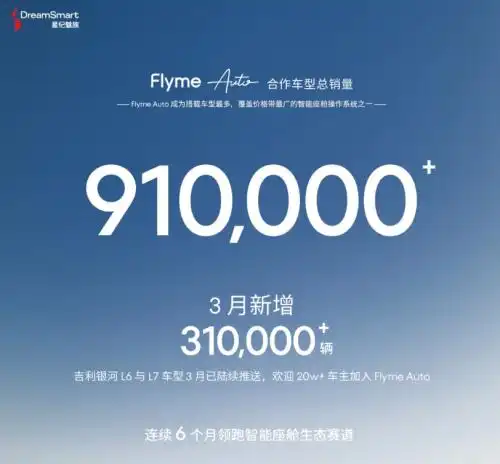 科技快报网讯,4月8日,星纪魅族公布了其智能座舱操作系统Flyme Auto的3月战报,数据显示,单月新增用户达到31万,合作车型总销量突破91万,连续六个月新增用户数位列行业第一。这一成绩的取得,离不开星纪魅族与吉利、领克、银河等多家知名汽车品牌的紧密合作,目前已有22款车型搭载了Flyme Auto系统。 |