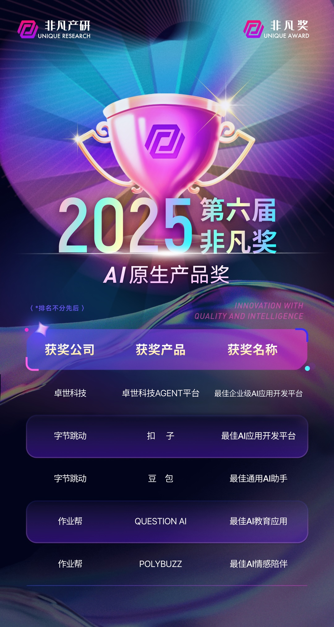 2025年4月18日,由非凡资本倾力打造的顶级行业盛会——“2025年度生成式AI商业高峰论坛”在上海盛大启幕!本次活动汇聚78位分享嘉宾、240位AI创始人,219位AI投资人,到会观众2000余人。在大会现场揭晓的第六届「非凡奖」获奖名单中,卓世科技凭借旗下Agent平台荣获“最佳企业级AI应用开发平台”殊荣,彰显了其在生成式AI商业落地领域的卓越成就与行业引领地位。 作为全球AI商业创新标杆奖项,本届「非凡奖」由非凡产研发起,吸引了众多国内外顶尖企业参与角逐,竞争异常激烈。此次获奖不仅是对卓世科技技术实力的高度认可,更是对其在企业级AI应用开发平台领域所做出贡献的肯定。 Agent 平台:企业级零代码一站式模型应用开发的典范 卓世科技 Agent 平台作为一款企业级零代码一站式模型应用开发平台,完美适配企业需求,助力企业迅速构建富含自身行业属性的智能化应用平台。 平台具备以下核心优势: 多源异构模型与知识增强:集成多源大模型、知识增强大模型以及企业知识库,融合本地模型、线上模型、开源闭源等多种模型,为企业提供丰富的模型资源与强大的知识支撑,满足不同业务场景下的多样化需求。 零代码开发与高效构建 :无需专业开发技能,通过简单的拖拽操作,企业用户便能在分钟级别内快速构建大模型应用,大幅提升开发效率,降低开发门槛与成本,使企业能够更敏捷地响应市场变化与业务需求。 特色能力组件与RAG检索增强 :内置行业组件、GDA 组件、GCA 组件等一应俱全,为企业提供丰富的功能模块与行业解决方案。同时,独特的 RAG 检索增强技术确保生成结果内容更加精准且全面,真正实现 “答你所想”,有效提升信息获取与应用的准确性与实用性。 Prompt 压缩与优化体验 :运用 Prompt 压缩技术优化应用效率,显著减少资源消耗,从而大幅提高用户体验,确保企业在使用过程中能够享受到流畅、高效的智能化服务,提升用户满意度与应用的可持续性。 深度行业场景应用,引领企业级AI价值重构 Agent平台作为卓世科技的核心产品,基于先进的生成式AI技术打造,具备强大的产品技术架构创新性与商业可扩展性。在实际应用中,卓世科技Agent平台已在企业服务、工业制造、健康养老以及文教传媒等多个关键行业取得显著成果。 例如,在企业服务领域,卓世科技Agent开发平台以"零代码编排"打破技术门槛,通过单工作流到多智能体的柔性架构,助力北京集智未来人工智能产业创新基地有限公司实现了办公助手、会议调度、行政管理等场景的全流程自动化。 基于此平台搭建的应用,拥有灵活的发布能力,能够迅速响应市场变化,及时部署到不同场景。特别是与 OA 系统深度融合,结合 Agent 强大能力,创新性地构建起智能体数字员工应用,涵盖办公助手、会议助手、行政助手、决策助手等多个场景。集智未来过去需要2人团队花费1天完成的会议安排和文档总结,现在1名行政人员通过数字员工1小时内即可处理完毕。 同时,卓世科技积极构建开放的AI应用开发生态,通过Agent平台为开发者提供丰富的工具集与技术支持,吸引了众多合作伙伴加入。 坚持创新驱动发展,持续引领行业前行 自成立以来,卓世科技始终秉持“AI∙普惠,深耕 AItoB”的发展理念,不断加大研发投入,保持技术领先优势。公司核心研发团队由来自百度人工智能团队,国内外顶尖高校与科研机构的AI专家组成,占员工总数比例高达50%,年均研发投入占比超过30%。凭借持续的技术突破与产品迭代,卓世科技已成为企业级AI大模型应用开发领域的领军企业。 荣获第六届非凡奖“最佳企业级AI应用开发平台”称号,不仅是对卓世科技过往成绩的肯定,更是对其未来发展的激励。站在新的起点上,卓世科技将继续深化技术创新与产品优化,携手更多合作伙伴,共同推动生成式AI技术在企业级市场的广泛应用,为全球数字化转型注入强劲动力。 在生成式AI浪潮席卷全球的当下,卓世科技Agent平台的成功获奖,标志着其在企业级AI应用开发领域的领先地位与卓越实力。未来,卓世科技将继续深耕行业场景,以创新技术赋能企业价值重构,与全球伙伴共创AI商业新未来。 关于非凡奖 「非凡奖」是由非凡产研发起的全球AI商业创新标杆奖项,自2019年创立以来已成功举办六届。作为中国首个聚焦AI商业落地实践的专业奖项,非凡奖致力于挖掘全球生成式AI的原生产品、创新场景与标杆案例,覆盖国内、出海及全球化三大维度,推动营销、内容、销售、体验等领域的AI深度赋能与价值重构。奖项以前瞻性视角定义全球AI商业创新标杆,历届获奖案例覆盖电商、金融、制造等20+领域;同时构建“产品新质力+技术原生力+商业落地性+场景创新度”四维评审体系,联合顶尖投资机构与产业智库深度解析案例方法论,累计收录400+实战案例,为从业者提供可复用的数智转型工具箱。 |