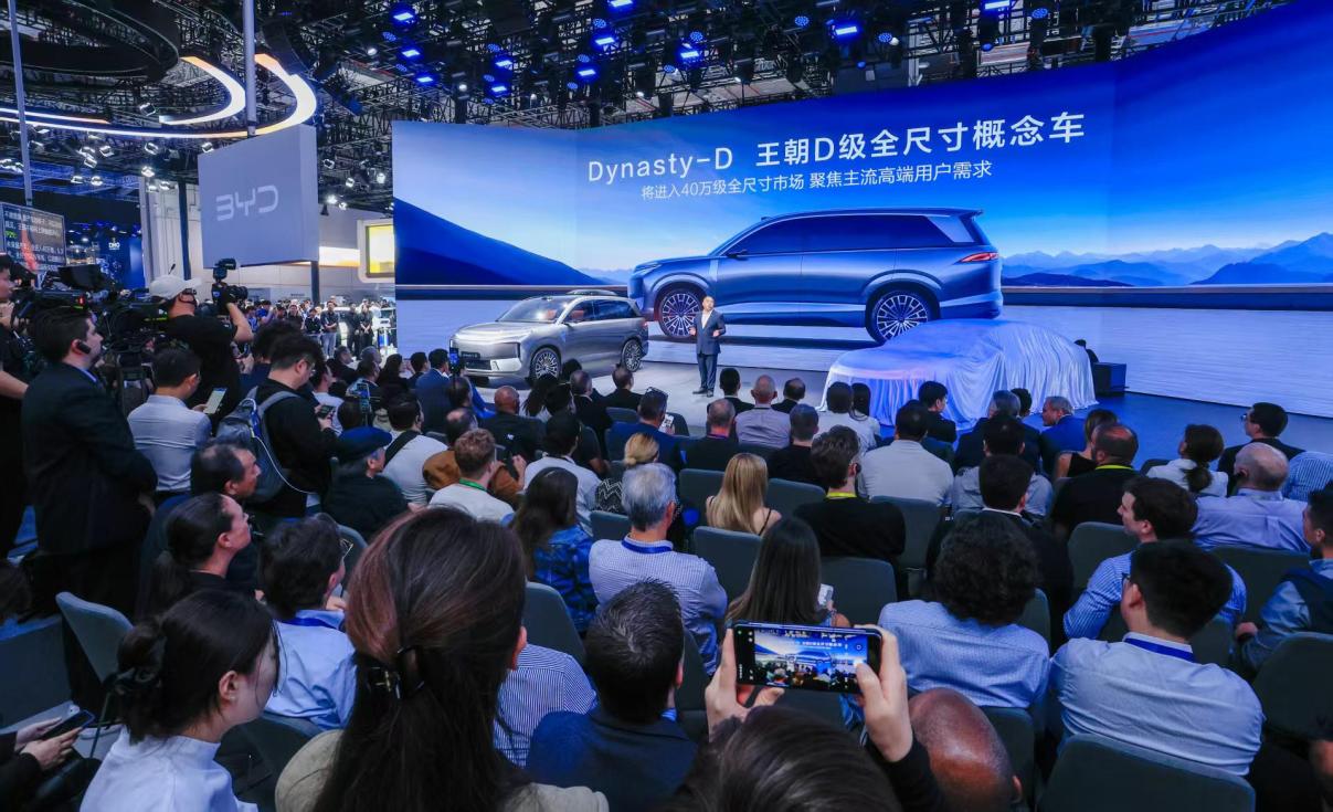 【科技快报网讯】4月24日下午,上海车展正式开幕,比亚迪的新款概念车Dynasty-D王朝D级全尺寸概念车在此次展会上首次亮相。 该概念车外观设计以龙为灵感,前脸细节呈现出2.4米长的立体飞檐龙须,并采用了一体成型贯穿灯和晕染工艺。 侧面简洁的侧裙板配备23寸轮毂,而后方则创新地使用了3D立体中国结尾灯。内饰部分采用竹木嵌纸和非遗金箔装饰件,并配备八屏联动座舱。 据透露,未来量产版Dynasty-D王朝D级全尺寸SUV将进入40万级、5.3米长的市场。 ![]() |