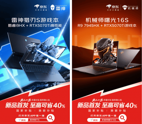 机械师曙光16S、雷神猎刃S搭载英伟达新款RTX 5070Ti显卡的两款笔记本新品已在京东先人一步首发上线,为游戏玩家及高性能需求用户带来了高性价比选择。其中,机械师曙光16S搭载AMD R9处理器,雷神猎刃S则采用了酷睿i9处理器,强劲配置可轻松应对各种复杂需求。这两款笔记本在京东售价均为9999元,使用国家补贴可立省20%,到手价7999元,下单还可享180天只换不修、2160小时游戏加速器季卡权益,晒单赠100元E卡。此外,在京东购买机械师曙光16S晒单还有机会赢16GB内存条,福利丰厚。打开京东APP搜索“机械师曙光16S”或“雷神猎刃S”即可开启选购,心动的朋友不要错过首发期优惠。 机械师曙光16S搭载了AMD Ryzen 9 7945HX处理器,拥有16大核和32线程,单核最大主频达5.4GHz,为多任务处理和大型游戏提供充足的动力。显卡搭载了备受广大消费者期待的RTX 5070Ti,新显卡采用了NVIDIA Blackwell架构,配合DLSS 4多帧生成技术,可为每个传统渲染帧生成多达三帧,搭配整套DLSS技术,最高可将帧率提升至传统图像渲染的8倍,能让玩家能够在更高的分辨率下更大限度发挥视觉效果。散热方面,曙光16S采用了双风扇和四热管的散热结构,搭配先进的相变硅脂技术进一步提升导热效率,确保核心部件始终处于最佳温度状态,核心总功耗至高200W,整机噪音可低至43dB。 屏幕方面,曙光16S配备了2.5K 300Hz的16英寸高刷屏,无论是游戏竞技还是视频播放都能提供丝滑流畅的视觉体验。同时屏幕还覆盖了100%sRGB色域,亮度高达500nit,通过DC调光技术以减少屏幕闪烁,还拥有硬件级防蓝光认证,让用户观看得更舒适。外观设计上,曙光16S延续了机械师品牌的潮酷风格,左舷带有镭射铭牌,A面采用全金属工艺,镜面LOGO和键盘均支持炫彩RGB灯效,科技感十足,还配备了独立的数字键区和正常大小的方向键,进一步方便用户的操作。 雷神猎刃S搭载了英特尔酷睿i9 13900HX处理器,拥有24核心32线程,至高睿频为5.4GHz,最高可实现130W的性能释放功率。显卡方面同样采用了新款RTX 5070Ti,带来更逼真的游戏画面。散热系统进行了全新升级,通过双涡流内循环架构高效降低机身内硬件温度和键盘区的表面温度,大幅提升散热效率,核心总功耗至高200W,整机噪音低至43dB。 屏幕方面,猎刃S搭载了雷神与BOE联合研发的2.5K 240Hz蜂鸟护眼屏,环境光对比度高达150:1,阳光下也能清晰观看屏幕。外观方面,猎刃S整机支持180°开合,笔记本A面采用了阳极氧化金属工艺,配合RGB镜面光盾LOGO和侧面的炫彩镭射铭牌,使笔记本电竞感十足。此外,猎刃S还通过了冲击、跌落、极端温度环境等多项严苛测试,不惧磕碰,各种环境下都能正常使用。 为进一步满足消费者新品国补换新需求,给予用户更多“抢鲜”权益,京东携手3C数码厂商、运营商及回收企业,发起“京东先人一步加速换新计划”——消费者在京东下单3C数码新品可享国家补贴叠加以旧换新补贴、京补合约等多重补贴福利。同时,在新品服务权益加码的基础上,消费者还可享受“权益随心选”这一全新购新方式,获得更加自由灵活的换机体验。目前,机械师曙光16S及雷神猎刃S均已在京东先人一步抢先开售,想要尝鲜体验的用户记得锁定京东。 |