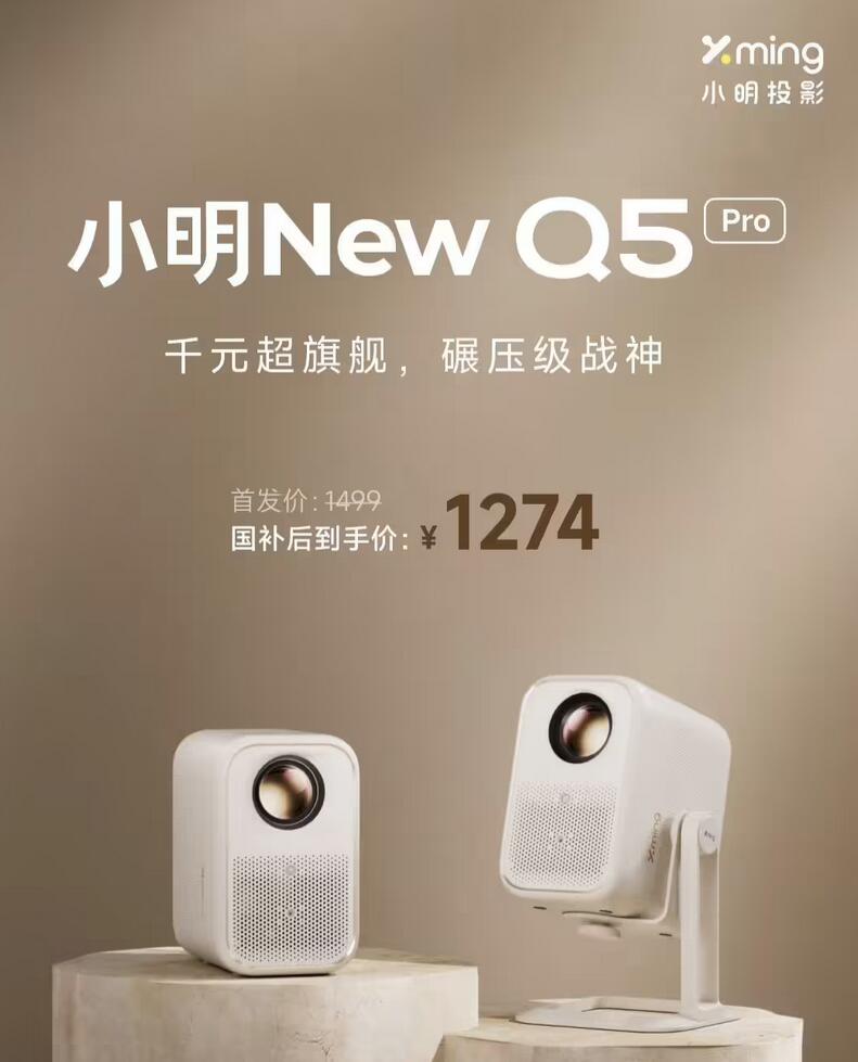 4月27日消息,小明New Q5 Pro 投影仪现已上架京东开售,新品搭载MT9660处理器、575 CVIA 流明亮度、支持米家生态,首发1499元、国补后到手价1274元。 |