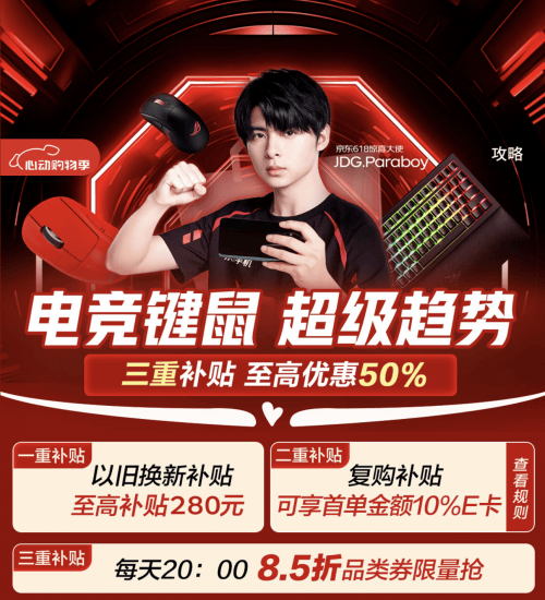 京东电竞装备超级品类日即将在5月27日正式开启,为广大游戏玩家带来键鼠、游戏台式机、超高刷显示器、游戏耳机等电竞装备好物。其中,面向电竞键鼠品类,京东在活动期间为用户提供了三重补贴,叠加后的优惠至高可省50%。第一重补贴是以旧换新补贴,至高可优惠280元;第二重补贴针对复购用户,可领专属复购补贴,金额为首单金额的10%,以E卡形式发放; 第三重补贴是每天晚8点可抢8.5折品类券,福利丰厚。打开京东APP搜索“电竞键鼠”即可进入活动会场开启选购,电竞装备一站式购齐。 精彩的竞技操作少不了优质鼠标的配合,在京东电竞装备超级品类日有多款品质鼠标值得选择。例如罗技(G)GPW3无线鼠标,采用了新一代HERO2传感器,拥有最高88G的加速度和888 IPS的灵敏度,无论是MOBA游戏中精准锁定开团C位,还是在FPS中实现超远距离单倍镜击杀,HERO2传感器都能带来像素级定位,助力微操赢得先机超越对手。LIGHTSPEED无线技术加持下鼠标的轮询率高达8KHz,通过低延迟带来更稳定的输出。鼠标总重约60g,非常适合电竞玩家,活动期间京东售价799元。 此外雷蛇毒蝰V2pro专业版也是不错的选择。鼠标经由TEAM RAZER职业战队选手共同研发和测试,性能可靠响应速度快。总重约59g,最高可设定30K DPI,精确追踪用户的每一次操作。还采用了非对称中止技术,在鼠标被抬起时可保留一定的工作高度,防止尾部角度急速变化,避免传感器降速,放下鼠标时不会过早进入工作区域,避免过早对焦引起传感器准星抖动,其中的工作高度支持用户自定义,非常适合手臂抬鼠流玩家。该款鼠标日常售价899元,活动期间叠加各种优惠券后到手价不高于599元,晒单还送CF绝版道具,喜欢FPS游戏的玩家不容错过。 很多游戏一直对急停操作有较高的要求,磁轴键盘可以帮助玩家显著降低急停操作的难度,更好地享受游戏的乐趣,京东电竞装备超级品类日也带来了相应的好物。例如阿斯盾ZEUS 68磁轴键盘,采用了FR4材质加厚PCB板,比市面上大多数磁轴PCB板更厚,提供更高的精度和更强的抗干扰能力。RT数值可在0.005至3.4mm范围调节,即使是新手玩家也能轻松实现游戏中的急停操作。轴体采用了凯华星磁轴,手感轻盈,长时间操作手指也不累。领国家补贴后来京东下单立减15%,到手价237.15元。此外在京东电竞装备超级品类日还有更多优质键盘可选,心动的朋友不要错过。 |