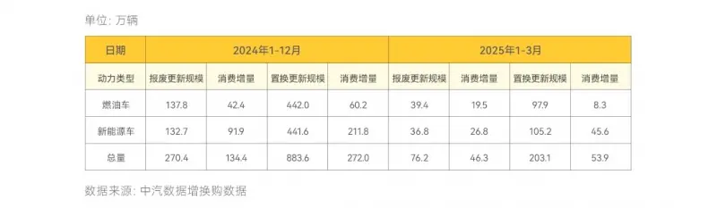6月6日,懂车帝联合中汽数据共同发布《2025汽车以旧换新消费洞察报告》(以下简称”《报告》“),基于行业数据与真实用户调研,对以旧换新补贴政策成效开展分析。《报告》指出,“以旧换新”是2025年汽车行业关键词,补贴政策成效显著。2025年一季度,全国乘用车以旧换新购车类别市场总量(此次市场销量口径为增换购数据,含增购数据)达到279.3万辆,同比增长100.2万辆,有效刺激车市活力。 用户调研显示,超70%受访者认为补贴增强了购车意愿。除了刺激消费总量增加,以旧换新政策也有效加速了新能源市场的渗透。中汽数据预测,下半年以旧换新和新能源购置税全免到期两大政策红利将持续释放,2025年车市仍有增长空间,全年新能源乘用车市场渗透率有望突破55%。 以旧换新激活市场:一季度换新总量近280万 2024年4月,汽车“两新”工作在全国启动实施。2024年,全国乘用车以旧换新市场总量达1154万辆,同比增量达406.4万辆。2025年以旧换新补贴加力扩围实施,2025年1-3月,全国乘用车以旧换新市场总量达到279.3万辆,同比增量达100.2万辆,有效提振了车市消费。 分补贴类型看,置换更新购车规模高于报废更新。2025年1-3月,乘用车置换更新与报废更新规模分别为203.1万辆和46.3万辆,同比增量分别为53.9万辆和46.3万辆。 懂车帝通过用户调研也发现,在选择补贴类型时消费者更青睐参与门槛较低的新车补贴及置换更新补贴。通过降低参与门槛、简化领补流程,可以对补贴政策形成优化。