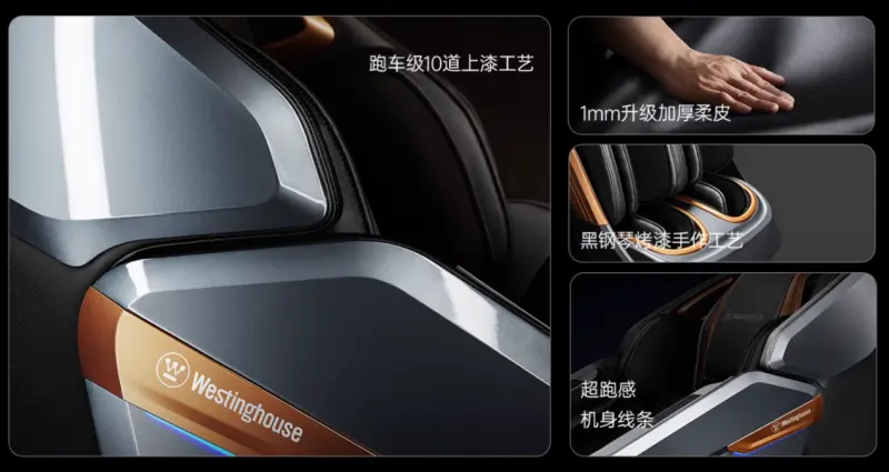 西屋(Westinghouse)创立于1886年,是享誉全球的百年品牌,从核电技术到交通传播,再到家用电器,西屋不断突破技术边界,已为五大洲数亿用户带去优质产品与服务。2017年西屋洞察家居健康趋势,成立西屋按摩事业部立项按摩椅,跻身个护健康电器赛道,专注高端按摩椅的研发与创新。 西屋按摩椅恪守“INNOVATION YOU CAN BE SURE OF”(值得信赖的创新)品牌理念,把“创新研发,精工品质”作为生产准则,始终将产品品质放在首位,按摩椅通过欧盟CE、华测CTI、威凯CVC认证,产品安全有保障。欧盟CE是产品进入欧洲经济区市场的“通行证”,检测标准严苛,西屋按摩椅在生产和使用过程中安全、健康、环保均符合其核心标准。 技术是产品品质与性能的核心支撑,西屋按摩椅提出“四维联动”的技术概念,即按摩椅是一个系统性整体,将精钢大机芯、双滑槽导轨、大动力气泵、多独立气阀四项技术融合,真正实现了仿生贴合按摩。 机械手还原专业按摩师揉捏、捶打、指压、推拿等多种手法,在双滑槽导轨作用下还能主动伸手贴合人体曲线部位。采用高压气泵跟多独立气阀组合的全身气囊系统,不同部位气囊可单独控制,气囊不仅充气量饱满,而且充/放气速率快,夹捏体感舒适带劲。 西屋按摩椅致力于实现“从技术到体验”的跨越,从用户需求和感受出发,对每款按摩椅的自动程序进行反复调试,不断优化功能细节,打磨外观设计,致力于为用户打造一个全方位、个性化的健康关怀空间。 西屋按摩椅外观主打时尚、简约风格,能够与不同家居环境融合。同时,西屋按摩椅在材质选择上也十分考究,采用优质加厚PU皮革和高强度烤漆工艺ABS外观,皮革均通过甲醛、气味、染料检测,不仅舒适亲肤,使用安全,而且耐磨耐用。机身ABS钢琴烤漆外观,制作工序繁琐,但耐磨耐腐蚀,久用光泽如新。用户坐在按摩椅上,仿佛置身于一个温馨、舒适的私人按摩空间,能够沉浸式感受按摩椅带来的身心放松。 为满足不同用户的按摩需求,西屋按摩椅配备多种按摩程序。用户可以根据自己身体状况和喜好,选择对应的部位重点、放松场景、特定人群、轻重强度程序,一键开启按摩。此外,西屋按摩椅还支持手动调节模式,用户可以自由选择机械手按摩手法和位置,调节按摩力度、速度、时间和姿势,实现个性化按摩体验。 未来,西屋按摩椅将继续秉承创新驱动和品质为本的理念,深入挖掘用户需求,致力实现从技术到体验的持续跨越。同时,西屋按摩椅也将紧跟时代发展步伐,把行业前沿技术融进产品,为用户打造更舒适、智能、个性化的按摩产品及服务,为全球消费者带来更多高品质的健康按摩解决方案,引领按摩椅行业智能健康家居新趋势! |