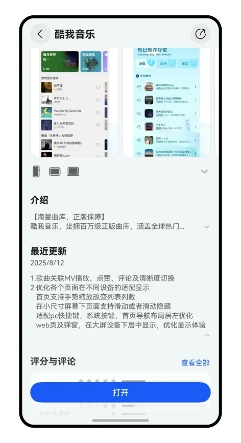 鸿蒙生态迎来音乐体验的重大突破——酷我音乐最新版本正式支持MV播放功能,成为鸿蒙5系统首个实现完整MV交互的音乐应用。此次升级不仅带来了MV播放、点赞、评论及清晰度调节等全新视听体验,更通过对手机、平板、鸿蒙电脑等设备的针对性适配,让音乐服务在不同终端都能呈现完美状态,为用户带来了更优质的全场景音乐服务。 MV播放与互动功能首秀,视听体验全面升级 本次更新最引人注目的亮点是歌曲关联MV播放功能的正式上线。鸿蒙版酷我音乐采用HarmonyOS AVPlayer视频播放器实现音乐MV功能,用户可以在聆听喜爱的音乐时,同步欣赏到精美的官方MV,获得真正的视听一体化享受。功能不仅限于观看,用户还能对MV进行点赞和评论,与其他乐迷分享感受,并支持根据网络状况或个人喜好自由切换清晰度,配合横屏模式更可带来沉浸感十足的观影体验。 多设备适配深度优化,体验更加流畅便捷 鸿蒙版酷我音乐对多终端设备适配进行了深度优化,确保用户无论使用手机、平板还是鸿蒙电脑,都能获得流畅便捷的操作体验: 小屏体验优化,可视内容最大化:在Pura X外屏或直板机分屏状态下,播放页小窗支持上下滑动查看信息。非播放页上下滑动时,顶部栏和tab栏可根据用户的滑动实时隐藏或露出,在不影响操作的情况下大幅增加可视内容。 大屏首页布局优化:在平板及鸿蒙电脑等大屏设备上,首页支持手势缩放改变列表列数,用户可以根据自己的需求灵活调整页面布局;平板上的首页导航布局居左显示,鸿蒙电脑则采用分级导航,重点功能一触即达;配合沉浸式标题栏,让界面更加美观; 大屏专辑页优化:无论是竖屏还是横屏,都能完整展示专辑封面,不被遮挡; 大屏Web及弹窗页优化:web页及弹窗居中显示,无论是宽屏还是小窗都能一眼尽览,不过度遮挡画面,更加符合用户的操作习惯; 此外,针对鸿蒙电脑,鸿蒙版酷我音乐还新增了键盘快捷键控制功能,可便捷控制音乐切换、MV切换、播放、暂停、快进、快退等操作,大幅提升操作效率。 拥有海量正版曲库的鸿蒙版酷我音乐,凭借其简洁流畅的界面,通过此次MV功能的引入和深入的多端适配优化,成功为用户打造了覆盖全场景、更优质且便捷的音乐服务体验,持续引领着鸿蒙生态下的音乐消费潮流。 |