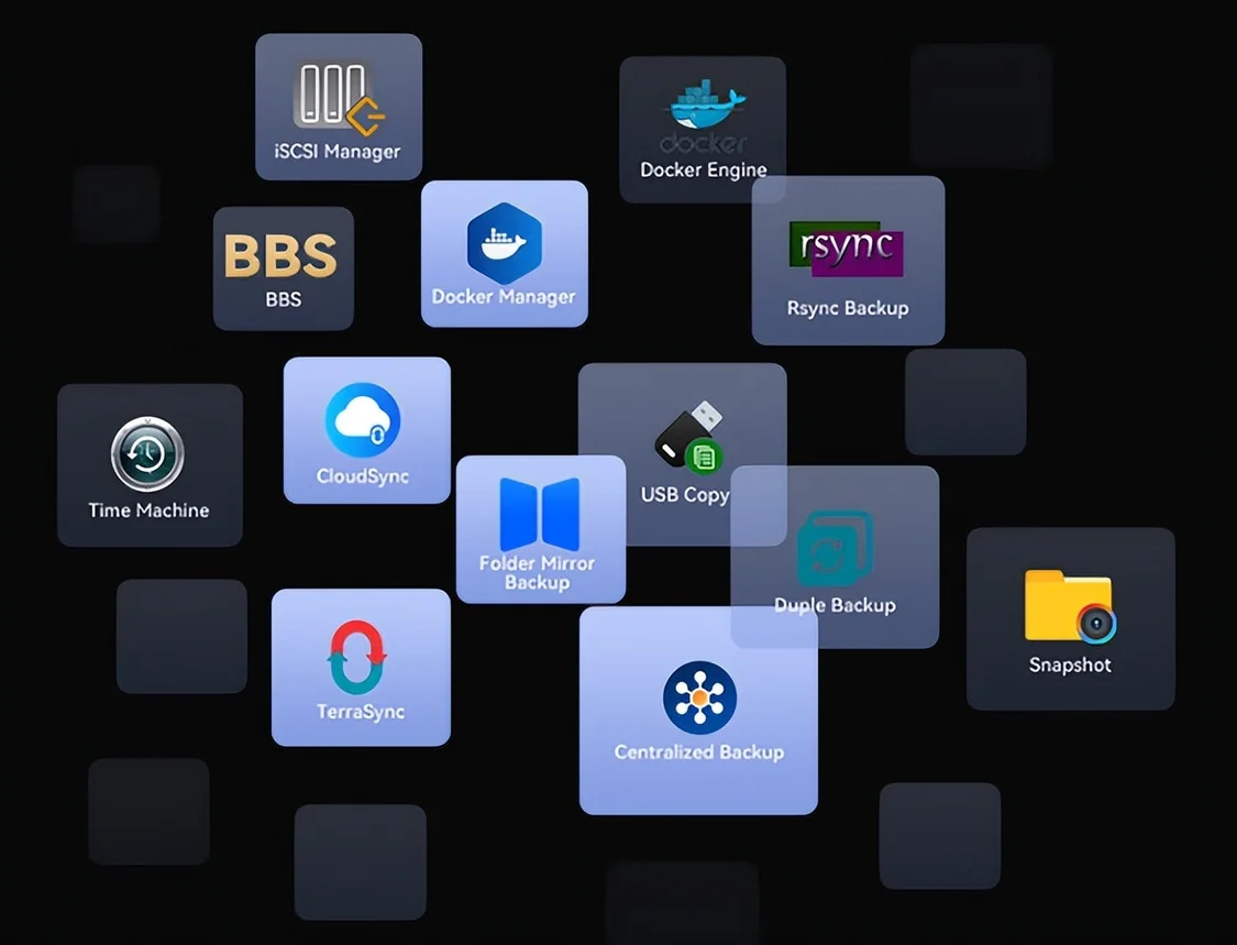 开放生态与细节设计,解锁多元玩法。 设备搭载的TOS 6系统支持Docker Compose与Portainer,可快速部署上千种容器应用,配合VirtualBox虚拟机功能,一台设备即可承载开发测试、影音服务、智能家居中控等多重角色。也适配即将上线,现在正处于内测阶段的TOS 7系统,50+新功能与千处细节优化,搜索速度提10倍,支持远程文件挂载与在线编辑,进一步强化操作效率。加上144TB超大存储与TRAID弹性扩容机制,极客可随心搭建从家庭多媒体中心到个人开发服务器的全场景方案。