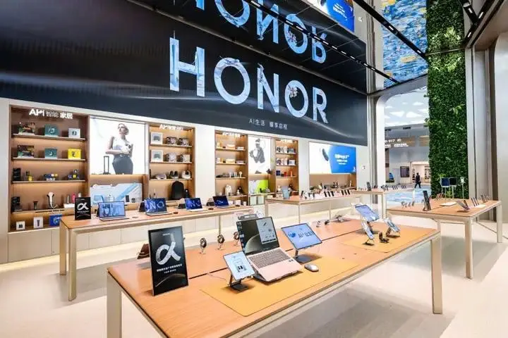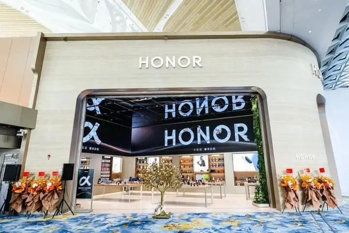 同时,为将“科技与人文共生”的品牌哲学转化为可感知的空间体验,直营店在设计中深刻融入了对机场场景与旅客需求的洞察。店外六米高的天然洞石立面,以沉稳质朴的肌理,在高速流转的空港环境中为旅客带来一份宁静与温暖;店内15米长的全景LED天幕则垂落而下,以流动的数字化内容与石材形成强烈视觉对比,构筑出一场科技与自然的和谐对话,营造出沉浸式的“云端”探索氛围。 此外,直营店内还特别设置的旅客休息区,以绿植墙营造舒缓空间,不仅提供便捷的设备充电与信息服务,更让旅客在行程间隙亲身体验荣耀AI终端带来的高效与乐趣,于细节处彰显品牌的人文关怀与科技温度。 值此第十五届全运会于粤港澳大湾区举办之际,荣耀首家机场阿尔法直营店将作为展现中国人文与科技的“智慧会客厅”,以更直接、更沉浸的方式向全球来宾展示中国AI终端技术的最新成果与先进理念。这不仅是对荣耀“AI赋能生活”品牌理念的生动诠释,更是中国科技以开放、创新的姿态服务、连接全球用户的自信表达,让每一位途经于此的旅客,都能切身感受到中国AI技术的温度与力量。 荣耀以开放姿态,驱动产业与区域协同发展 此次荣耀首家机场阿尔法直营店的启幕,是荣耀以开放生态推动产业协同、服务区域经济发展的战略实践,更成为荣耀连接全球开发者、硬件伙伴与终端用户的重要枢纽。通过展示荣耀“1X3XN”生态战略下丰富的AI终端与解决方案,该店正持续为粤港澳大湾区AI产业升级与新质生产力发展提供实体化支撑,打造了AI驱动区域经济高质量发展的全新范式。