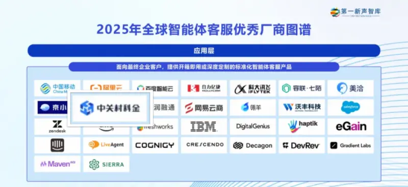 近日,中关村科金凭借在智能客服领域的创新实力与规模落地成果,入选《2025年全球智能体客服优秀厂商图谱》。这是继荣登IDC中国智能客服市场份额第四后的又一行业认可,充分彰显了其在以客服智能体为代表的企业级智能体落地能力上的领先地位。