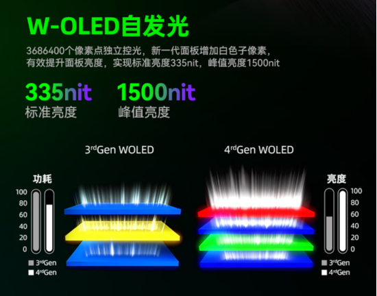 随着技术的发展和制造工艺的进步,OLED将成为近未来重点发展的显示技术已经成为行业共识。而作为OLED技术的改进分支,ANT272ZQE上搭载的第四代W-OLED技术通过自发光和增加白色子像素的方式,有效提升了面板亮度,弥补了普通OLED面板亮度不足的缺陷。