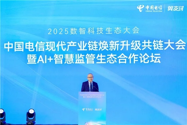 2025年12月5日,中国电信现代产业链焕新升级共链大会暨AI+智慧监管生态合作论坛在广州举行,来自数字消费、智慧监管、财司等领域生态合作伙伴齐聚一堂,共同探讨在AI与数字科技浪潮下,现代产业链协同创新、融通发展的新内涵与新未来。