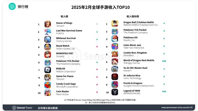 《Cookie Run: Kingdom》由韩国Devsisters开发,自2021年上线以来于全球市场表现强劲。据第三方机构Sensor Tower数据显示,该游戏在2025年2月位列全球手游收入增长榜前列。