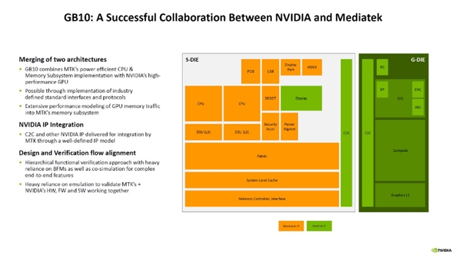 ·BlackwellGPU GB10 SoC芯片上的GPU模组采用的是Blackwell架构。如下图,从芯片原件排布就能看出左边是GPU,采用台积电的3nm工艺技术集成了48个SM、约6144个CUDA core,以及5代的Tensor core(张量核心)和4代的RT core(光追核心)。