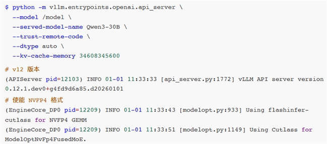 注意,官方推荐的—backend pytorch参数,会让模型跳过TensorRT的CUDA Graph优化与Kernel算子融合功能,仅以PyTorch原生模式运行,未能发挥TensorRT-LLM的核心加速优势。 ·vLLM+Qwen3-30B-A3B-NVFP4 在v0.12.0版本以前,使用vLLM + Qwen3-30B-A3B-NVFP4组合在执行CUTLASS FP4 MoE矩阵乘法操作时会遇见RuntimeError: Failed to initialize GEMM错误。这是因为旧版本的vLLM MoE模型对GB10 SM 12.1架构NVFP4格式的适配并不成熟,有些关键Kernel核函数适配没有完成。 直到v0.12.0版本,vLLM就正式支持了NVFP4,标志着FP4格式逐渐被主流认可。 NGC已经提供了vLLM v0.12.0版本的镜像我们可以直接使用。 如果想使用自己的镜像时,可以手动编译v12版本。 ·启动vLLM