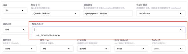 微调成功后,我们得到了一个Checkpoint记录,下拉可以选择刚刚微调好的模型。