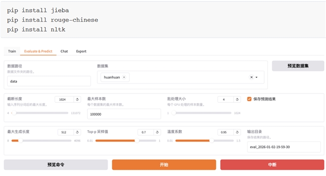 在经过3个Epoch的训练之后,效果也越好越好了。 批量推理和训练效果评估 上文中的人工交互测试实际上并不严谨,通常我们需要进行自动化的批量测试。例如:使用自动化的bleu和rouge等常用的文本生成指标来做评估。