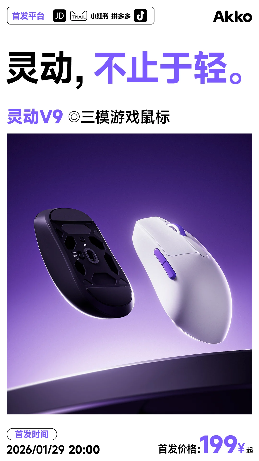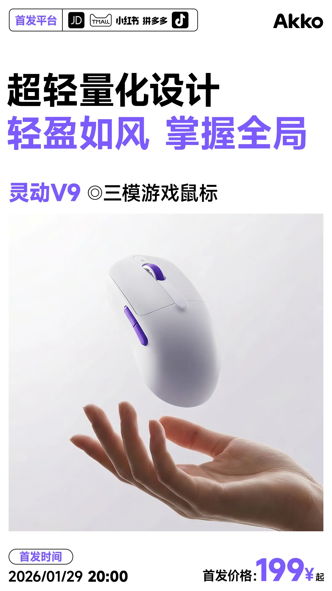 Akko灵动V9系列游戏鼠标:2026年1月29日20:00,全平台首发,超多首发福利等你来抢! |