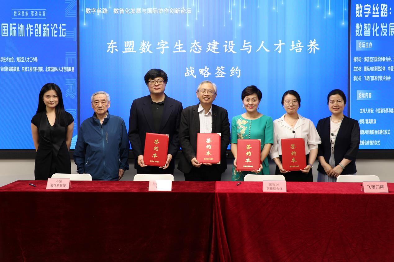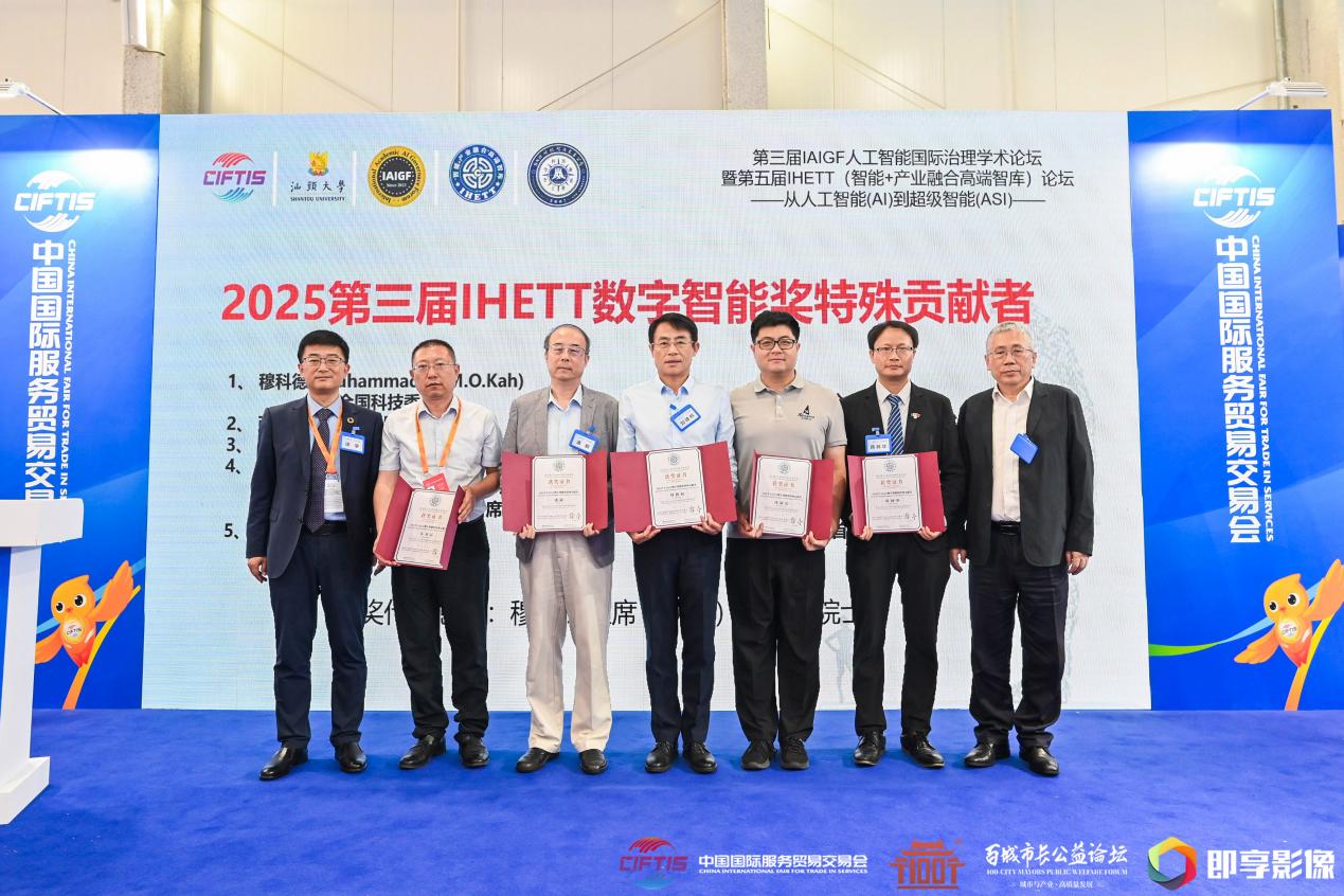 沈寓实(右三)荣获IHETT特殊贡献奖 作为中国云体系产业创新战略联盟的创始秘书长,沈寓实博士长期致力于信息产业自主创新和国际合作,构建全球化AI创新合作网络。他发起共建国际AI创新联合体,与东盟工程与科技院、格鲁吉亚国家科学院、玻利维亚国家科学院及香港技术研究院等建立战略合作关系,推动AI技术在能源、制造、医疗等关键领域跨境应用。他特别注重于服务“一带一路”沿线国家的数字化转型需求,通过联合研发、人才互访与数据共享机制,构建具有全球影响力的AI合作枢纽。在沈寓实院士的牵头下,玻利维亚国家科学院中国中心、格鲁吉亚国家科学院中国中心、国际创新研究院北京研究院等国际平台落地成立,将“平台共建、项目共研、人才共育”为特点的合作模式,打造成国际AI技术交流与产业协同的示范性窗口,显著提升了我国在人工智能领域的国际话语权与协同创新能力,为“数字丝绸之路”建设提供关键技术支撑。