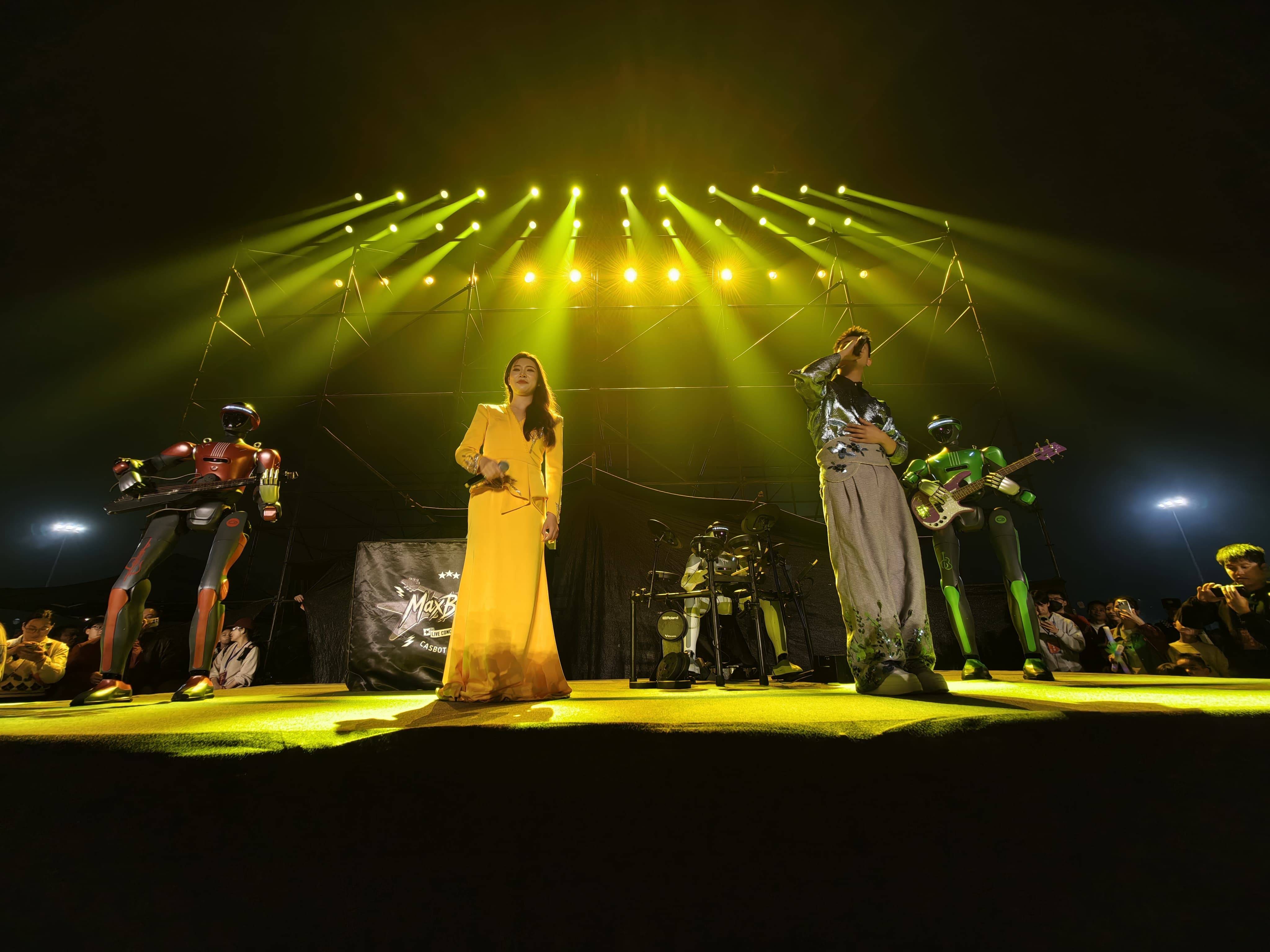 当晚8点,“活态非遗,宾州龙韵”文艺晚会在炮龙广场举行。灵宝CASBOT机器人乐队再次登台演奏,多机协同动作与节拍保持高度一致,在露天环境中持续稳定运行。科技元素与传统节庆活动同场呈现,成为节庆结构中的组成部分,也为具身智能系统在高人流密度场景下的稳定性验证提供了实践样本。