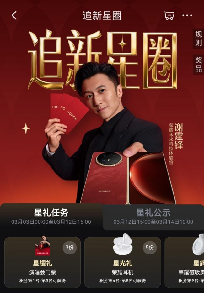 3月10日,荣耀Magic V6将正式发布。为带给消费者更多权益,京东携手荣耀打造先人一步加速换新计划,享限量新品优先发货,最快30分钟送达。即日起,消费者可到京东APP预约新机,方便发布会后第一时间下单。
