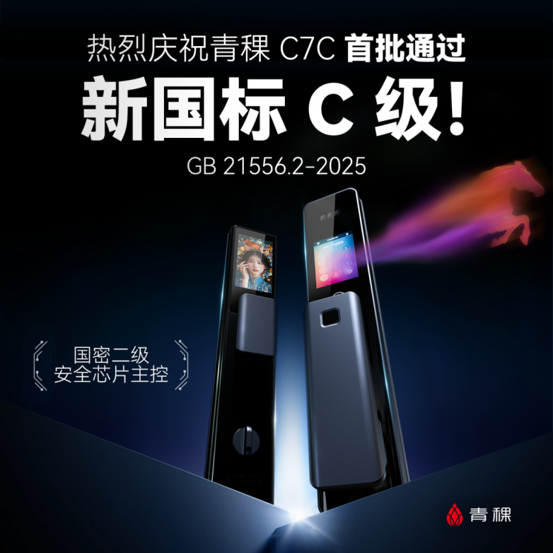 行业乱象:无标可循,低价内卷致鱼龙混杂 回望过去几年,智能锁行业的“内卷”乱象早已触目惊心,成为制约行业发展的最大瓶颈。 智能锁行业长期无强制性国标约束,低准入门槛让大量企业蜂拥而入,鱼龙混杂之下,无序竞争愈演愈烈。有的厂家偷工减料,用劣质锁芯、廉价电子元件拼凑产品,却谎称“安全升级”;有的投机取巧,主打“低价噱头”,200-300元的智能锁充斥市场,故障频发,沦为“一次性产品”;有的虚标功能,宣称“防破解、防暴力”,实则连基础的防技术开启都难以达标,甚至出现陌生人乱按指纹就能解锁、人脸识别被照片轻易欺骗的荒诞场景。更有甚者,忽视数据安全,导致用户人脸、指纹等敏感信息被违规收集、泄露,沦为隐私泄露的“重灾区”。 这种鱼龙混杂的局面,不仅让消费者陷入“选锁难、怕踩坑”的困境,也让广大经销商举步维艰,深陷低价内卷的泥潭难以自拔。 新国标:立规破局,终结内卷开启合规新时代 智能锁新国标的强制实施,正是终结行业乱象、推动行业洗牌的关键举措,具有里程碑式的意义。 作为关系千家万户家门安全的电子产品,智能锁的安全标准尤为重要,GB 21556.2-2025除了让智能锁行业首次拥有了强制性国家标准,更在原有行业标准的A、B级基础上新增C级安全等级,C级标准重点加强了数据安全、固件和APP防攻击、生物识别防攻击的安全标准,堪称“史上最严智能锁国标”。新国标规定,C级安全等级的智能锁必须搭载国密二级认证安全芯片,并要求数据加密传输与存储、固件和APP防攻击达到高标准。 随着新国标的强制实施,那些偷工减料、虚标安全等级、忽视数据安全的劣质产品,将彻底被市场淘汰,行业将告别无序内卷,进入“品质为王、合规制胜”的新阶段,真正回归智能锁“安全守护”的核心要义。 青稞引领:率先达标,为行业高质量发展树立标杆 青稞智能锁C7C率先通过智能锁新国标安全等级C级检测,是青稞对行业高质量发展的主动引领,其意义远超产品本身。 青稞率先通过智能锁C级标准并非偶然,作为行业内坚守高品质、高标准的代表,青稞的率先达标,不仅为行业树立了清晰的品质标杆,明确了“合规发展、品质至上”的核心方向,更打破了此前行业“重营销、轻研发”的浮躁风气,引导更多智能锁企业跳出低价内卷,聚焦核心技术与产品品质升级,推动整个行业向规范化、高质量方向稳步前行。 同时,青稞的率先布局,也为广大经销渠道提供了差异化的竞争利器,助力经销商跳出低价内卷的泥潭,凭借高品质、合理利润的产品抢占市场先机并持续发展,助力行业良性健康发展。