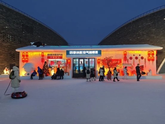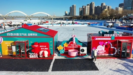 南北极极端环境的实战验证,不仅是对四季沐歌技术实力的最高加冕,更成为其独特的品牌资产与核心竞争力。四季沐歌以此为根基,将极地严苛环境下的技术验证成果加速民用转化,把极地科技的可靠性、安全性、稳定性传递给广大消费者,构建起技术价值、公益价值与市场价值协同升级的独特优势,为空气能行业高质量发展树立新标杆。 面对行业消费认知不足、极寒工况信任度不高、终端体验缺失等共性难题,四季沐歌空气能以极地技术为内核,创新打造场景化体验新模式,走出一条“极地科技+文旅场景+终端体验”的融合发展之路。 自2021年以来,四季沐歌连续三年在哈尔滨冰雪大世界、索菲亚游客广场、松花江冰雪嘉年华、亚布力滑雪场等核心文旅场景,搭建空气能游客温暖驿站。在零下二三十摄氏度的极寒环境下,依托南极同款超低温热泵技术稳定输出温暖,为游客提供休憩取暖、热水补给等公益服务,同时打造沉浸式技术体验场景,让极地科技从幕后走向台前,直观破解消费者对空气能极寒运行稳定性的认知痛点。