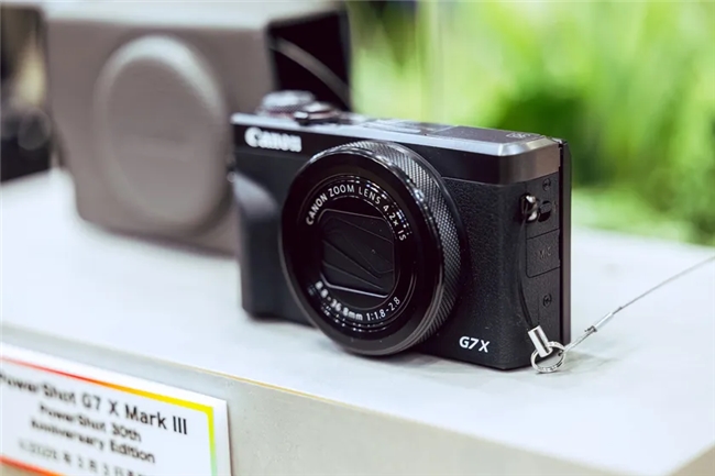 本次展会上,PowerShot G7 X Mark III 30周年限量版正式亮相,笔者第一时间上手体验。这款纪念机型核心性能与标准版一致,搭载1.0英寸堆栈式CMOS传感器,有效像素约2010万,配备DIGIC 8数字影像处理器;镜头采用4.2倍光学变焦,等效35mm焦距24-100mm,广角端F1.8、长焦端F2.8,弱光环境下可实现低ISO、高快门速度的清晰拍摄,适配日常记录与Vlog创作。
