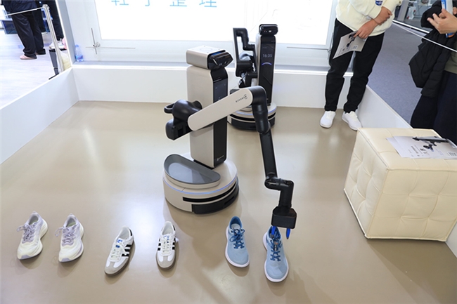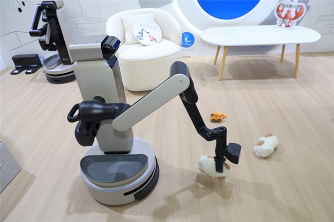 现场演示中,它主要的任务就是帮忙做收纳。比如地上有鞋子、玩偶、玩具,它不仅会摆好鞋子,还能捡起玩偶、玩具放进收纳纸箱。