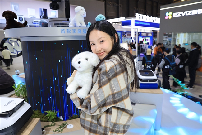 对于具身智能行业而言,八界的这一变化意义重大。 有了OpenClaw加持,八界从一台冰冷的机器人变成了有专属感的家庭一员,也使得具身智能技术真正走出实验室,成为能落地、有商业闭环的家用产品,让千家万户真切感受到具身智能对生活的改变,这是“具身机器人走进家庭第一步”。而这背后正凸显了科沃斯的硬实力,不是靠技术炫技,而是真正摸透了用户居家痛点。 从管家到伴侣,全品类矩阵覆盖家庭每一种需求 除硬核管家八界外,科沃斯展区里的AI仿生陪伴机器人“毛团儿”同样很受欢迎。