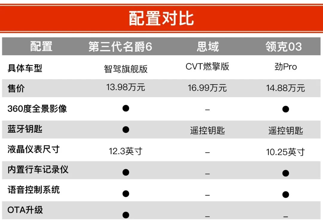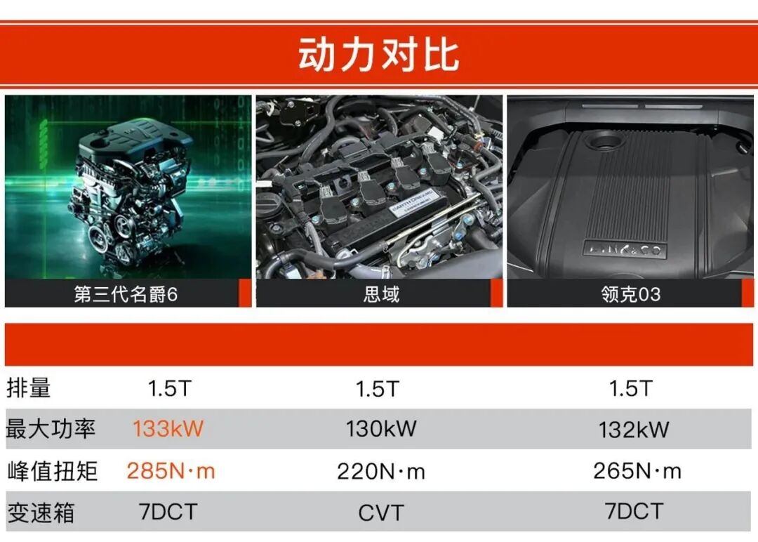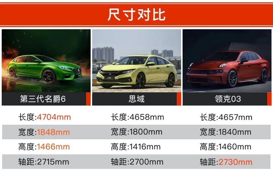 现如今家用轿车或多或少都会给自己贴上“性能”的标识,一方面可以促进营销,另一方面,性能的标签往往会吸引很多年轻消费者的关注。但不是所有的车,贴上性能标签后,都可以让消费者买单。在国内紧凑级家用轿车市场中,能称得上有“性能车”标签的寥寥无几,思域、领克03算是两位选手,前者的关注度可以说非常高,而领克03也是最近2年内的新选手,也算是个后起之秀。不过,本次要挑战这两位选手的就是前不久刚刚上市的第三代名爵6,出色的运动外观以及精致的内饰,辅以更强劲的动力,让这款车有足够的实力和思域、领克03掰一掰手腕。 “性能车”就要有性能车的外观 颜值可以说是目前消费者买车的关键,所谓“一见钟情”,一辆外观设计非常出色的新车往往可以给消费者留下深刻的印象,只有外观给到惊喜后,消费者才会继续往下看,否则外观都pass的车,想必内饰也不会有太多的惊喜。 首先,思域作为东风本田在华推出的一款“神车”,其可拥有很多的粉丝,这辆车拥有不错的外观设计,稍微加以改装,就非常像TYPE R,因此思域作为这一市场的紧凑级“性能车”,一点也不为过,毕竟运动化的外观套件,也很有个性。 在2018年上市的领克03,成为了自主品牌高端车市场中最具运动的车型,整体的设计风格以及尾部硕大的双边单出的排气管,并且后备箱上的尾翼也足以彰显个性,毕竟在家用运动轿车中,很少有原厂就配备尾翼的车型,领克03就是其中一款。这款车极具力量感的设计,让很多年轻消费者为其颜值买单,毕竟自主品牌没做到的,领克做到了。 话说回来,以上两款车型在外观设计表现上都称得上“运动性能车”的称号,至少外观设计已经达到消费者内心的标准。不过,当你看到第三代名爵6的时候,你就会思考一下,这款车到底是不是一款家用轿车,因为这辆车的外观设计已经颠覆了消费者对家用轿车的认知。 首先,第三代名爵6采用了掀背的造型,并且搭载了原厂空气动力学套件,数字燃动中网采用了亚光和亮黑的设计风格,并且数字光轨大灯采用了黑化灯体,整个车头采用倒扣式低重心的设计风格。 18英寸熏黑轮毂、红色运动卡钳、悬浮运动尾翼、气动扩散器等,这些空气动力学套件的搭配可提供最大116kg的下压力,高速行驶时可以更稳定,配合赛道绿的配色,让这辆第三代名爵6不再是一款真正意义上的家用车。 其次,尺寸上第三代名爵6在长宽高等方面的数据都领先思域和领克03,轴距还是领克03更占优势,但也只是体现在后排腿部空间上,15mm的差距在新款名爵6上并不能明显的感觉出来,无伤大雅。 精致的内饰往往更受欢迎 在外观说得过去之后,内饰也成为了消费者衡量一款车内在美的关键。首先,思域采用了比较传统的内饰设计风格,7英寸中控液晶屏也是这三款车中最小的,毕竟日系车在内饰以及车机系统方面,还是比较坚持传统的风格,你不能指望他们做的很出色,但日系车的车机系统并不难用,只能说满足日常即可。此外,思域的内饰其余功能区设计比较规整,整体算得上是中规中矩的类型。 领克03作为上市不久的一款新车,内饰设计也是颠覆了自主品牌高端车型的传统,10.2英寸液晶显示屏在这三款车中最大的,其显示信息也非常全面,只不过领克03的车机系统偶尔会出现卡顿的现象,虽然整体使用起来没什么太多问题,但细节之处还是需要提升,此外,电子挡杆、内饰大量软包材质以及真皮一体式运动座椅等,可以看到领克03的内饰在做工用料上都非常的下本。 第三代名爵6的内饰设计可以说和竞争对手完全不同,其融入了炽烈黄、燃动红两大内饰风格,并且采用了悬浮式双层中央通道,并且酷似战斗机风格的电子挡杆,让你坐进车内就有一种想要驾驶它的欲望。而一体式运动座椅可以提供更出色的支撑,BOSE音响的使用也足以让你享受到剧院级的听觉盛宴。 家用车还得看科技配置 作为家用车,安全配置肯定不能缺席,第三代名爵6相比思域而言,多出了并线辅助、疲劳驾驶、360度全景影像、内置行车记录仪等配置。并且第三代名爵6采用了L2.5 PLUS级别智能驾驶系统,其搭载了3毫米波雷达、4超声波雷达、全车6个摄像头,可以实现360度无死角的守护。此外,ACC全速段自适应巡航系统、FCW前方碰撞报警系统、AEB自动紧急刹车系统以及RDA后方盲区检测系统等,都让第三代名爵6可以在城市中自由穿梭,保证驾驶安全。 当然还不止这些,Super TJA超级交通拥堵辅助系统可以适应更多的道路环境,在拥堵路况下可以实现长时间的自动跟车,这对于新手司机或老司机来讲,在大城市的拥堵路况下,无疑可以缓解右脚很大的压力,防止堵车造成的小腿抽筋事情发生。而ICA集成式高速智能巡航系统可以带来更便利的驾驶体验,自适应巡航车速范围可在0-150km/h,可以在60km/h车速时,自动识别车道线并自动控制方向盘保持在车道中间行驶。 动力表现是“性能车”的灵魂 都说思域的1.5T发动机动力强劲,并且整体的动态表现非常出色,本次的三款车均搭载的是1.5T发动机,只不过领克03的为三缸发动机。数据上,第三代名爵6的1.5T发动机最大功率133kW,峰值扭矩285N·m,相比思域的130kW和领克03的132kW,各项数据指标均实现超越。 第三代名爵6的1.5T发动机采用了高流量涡轮、特制短连杆、高流量液冷系统,并且在缸体和缸盖上均实现了强化,这都足以证明这台发动机的过人之处,爆发力强、涡轮响应迅速,